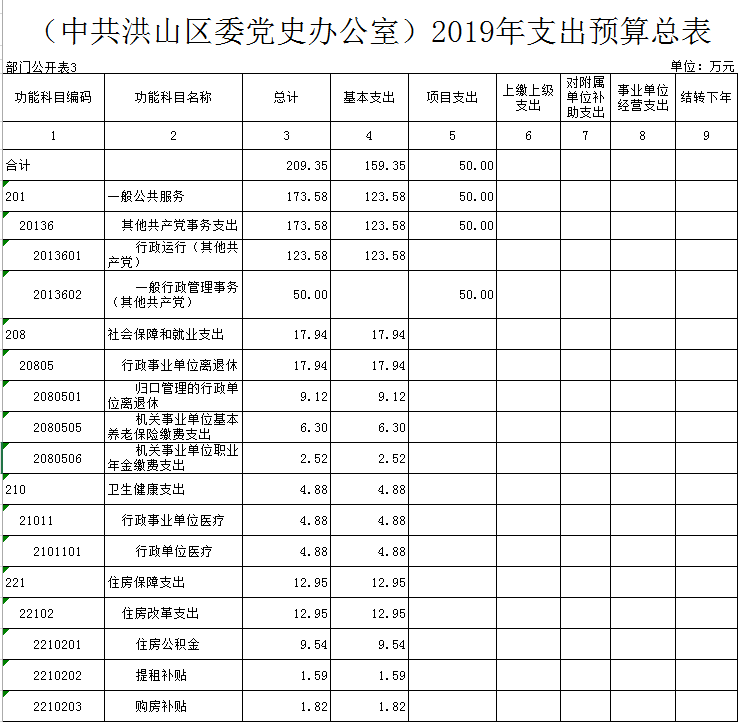 名 称:(中共洪山区委党史办公室)2019年支出预算总表