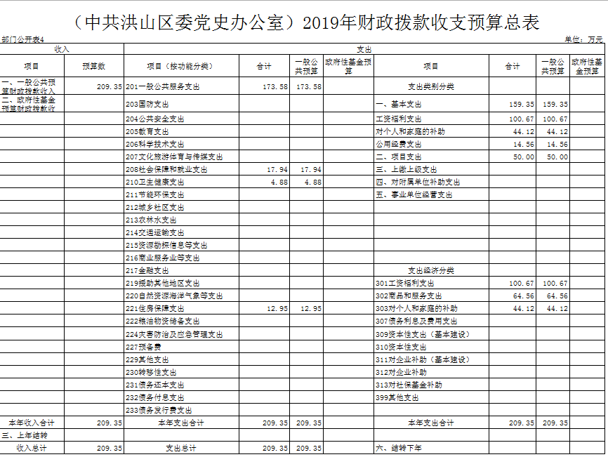 名 称:(中共洪山区委党史办公室)2019年财政拨款收支预算总表