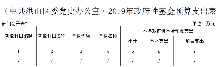 名 称:(中共洪山区委党史办公室)2019年政府性基金预算支出表