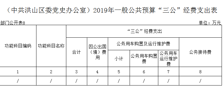 名 称:(中共洪山区委党史办公室)2019年一般公共预算“三公”经费支出表