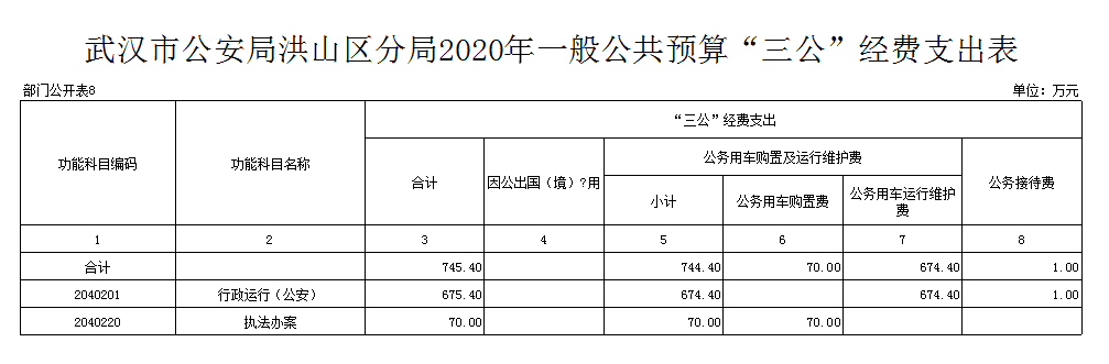 名 称:武汉市公安局洪山区分局2020年一般公共预算“三公”经费支出表