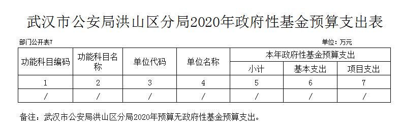 名 称:武汉市公安局洪山区分局2020年政府性基金预算支出表