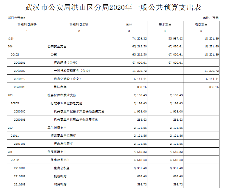 名 称:武汉市公安局洪山区分局2020年一般公共预算支出表