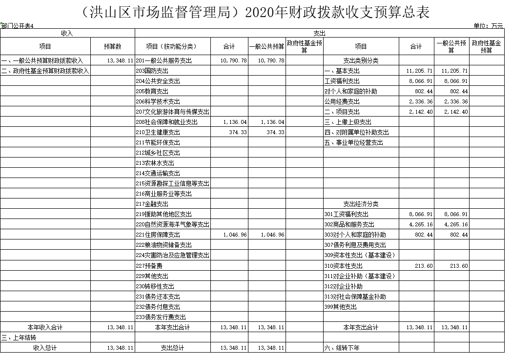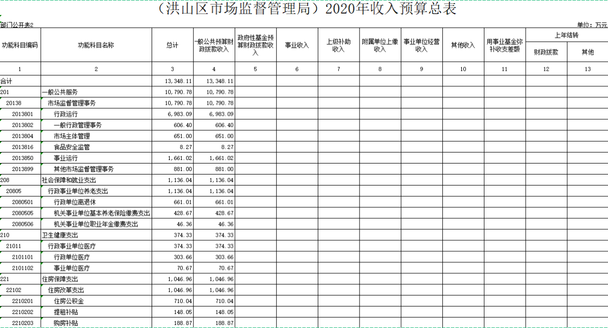 全年预算安排收入13348.11万元(我局系2019年根据洪山区机构改革方案新成立的部门,无法与上年对作对比);支出13348.11万元。全年预算收支平衡。