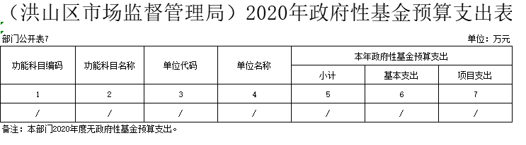 洪山区市场监督管理局2020年没有使用政府性基金预算安排的支出。