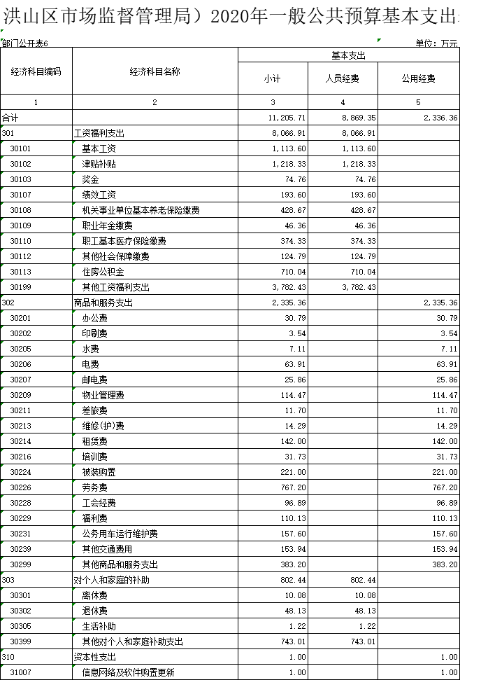 武汉市洪山区市场监督管理局2020年部门预算