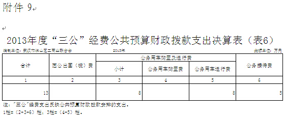 八、武汉市洪山区工商业联合会2013年度“三公”经费公共预算财政拨款支出决算表