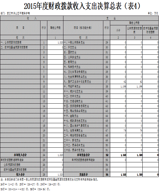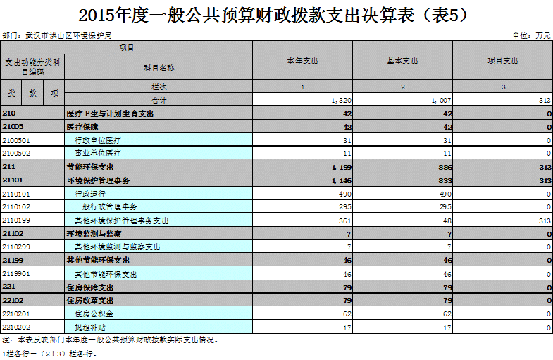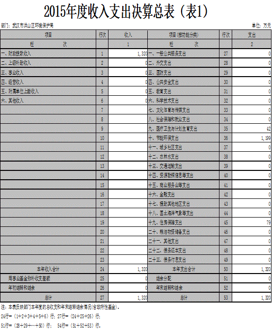 名 称:2015年度武汉市洪山区环境保护局部门决算 |