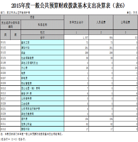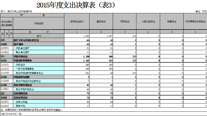 第三部分、武汉市洪山区环境保护局2015年度部门决算表
