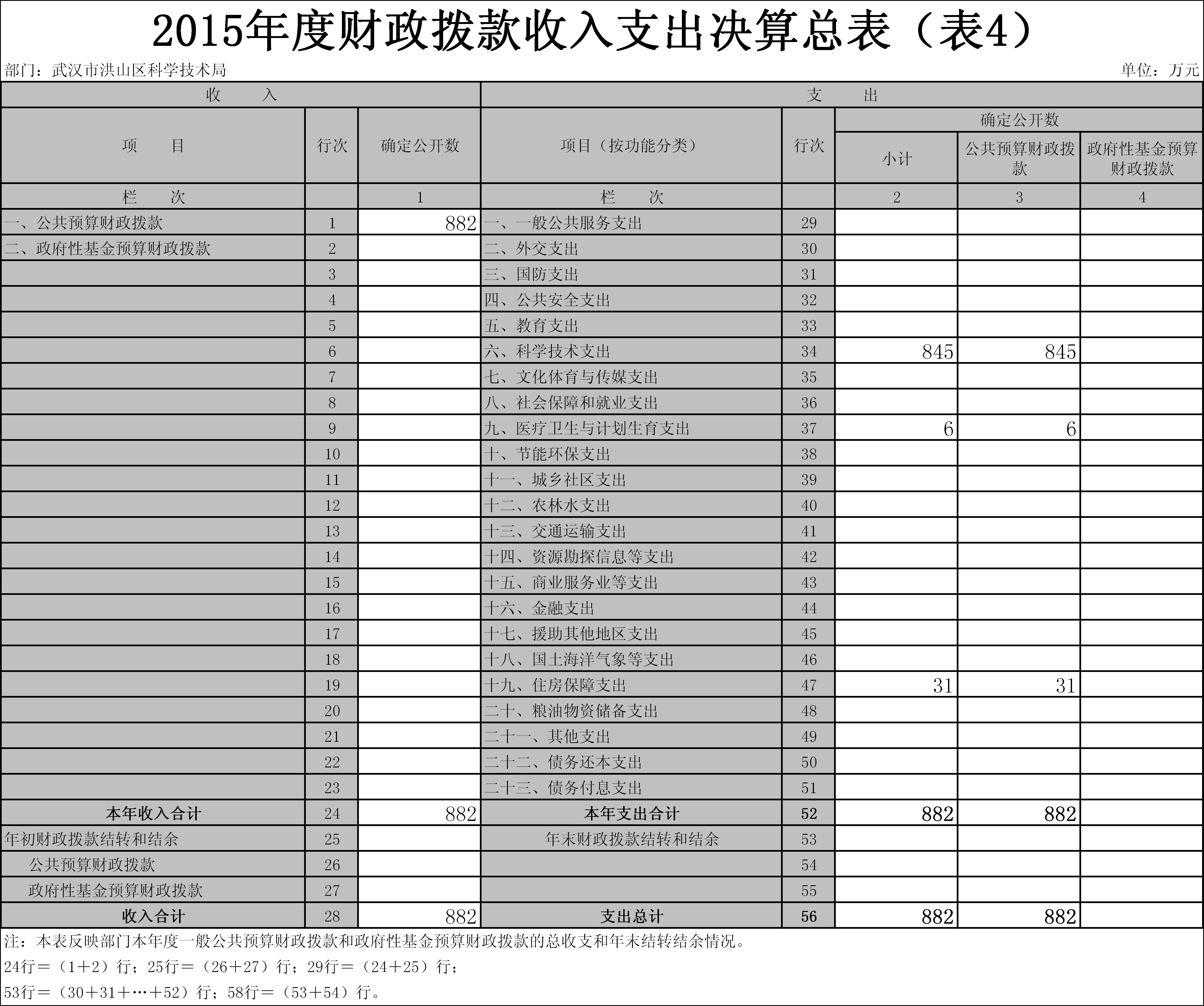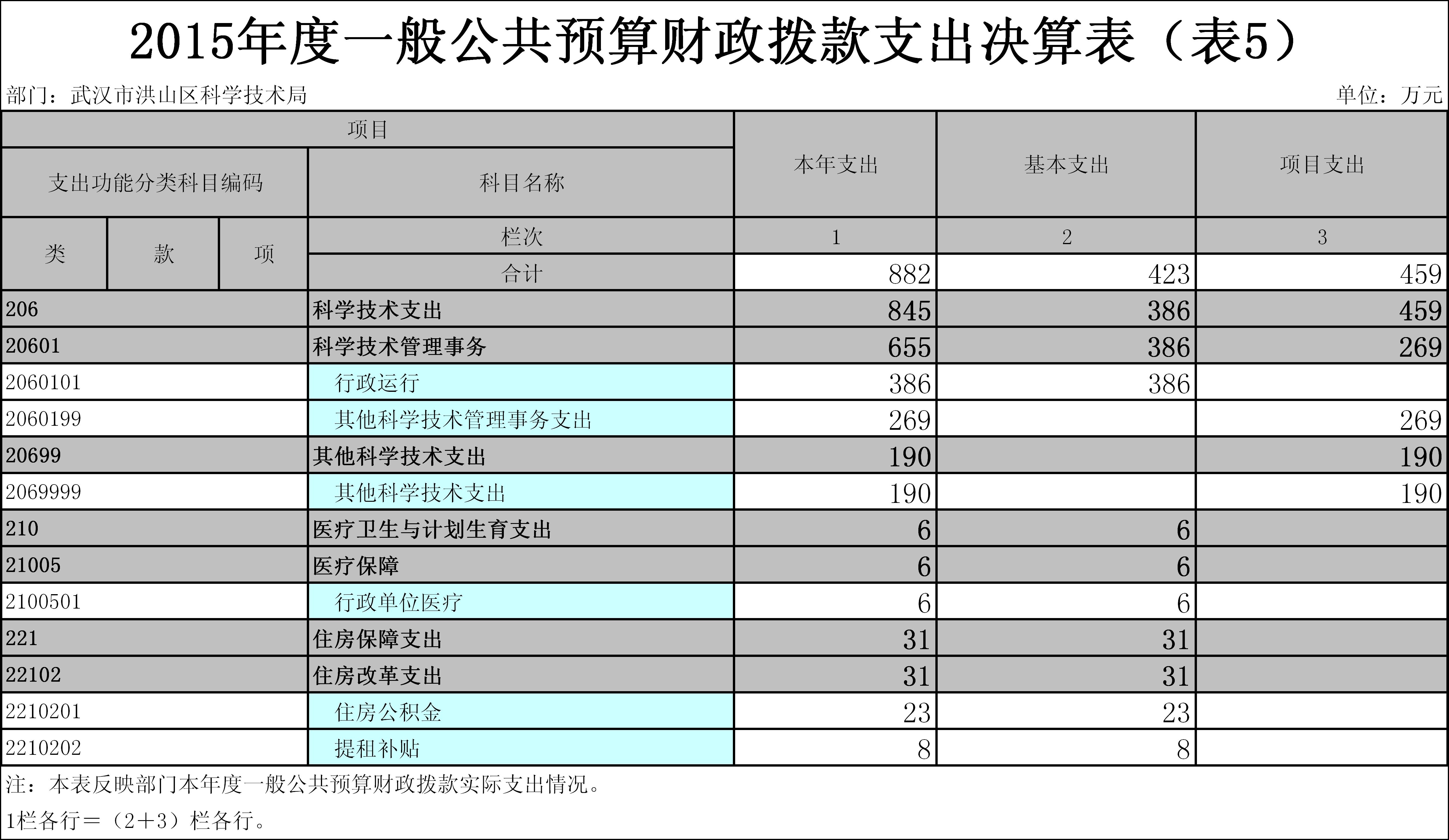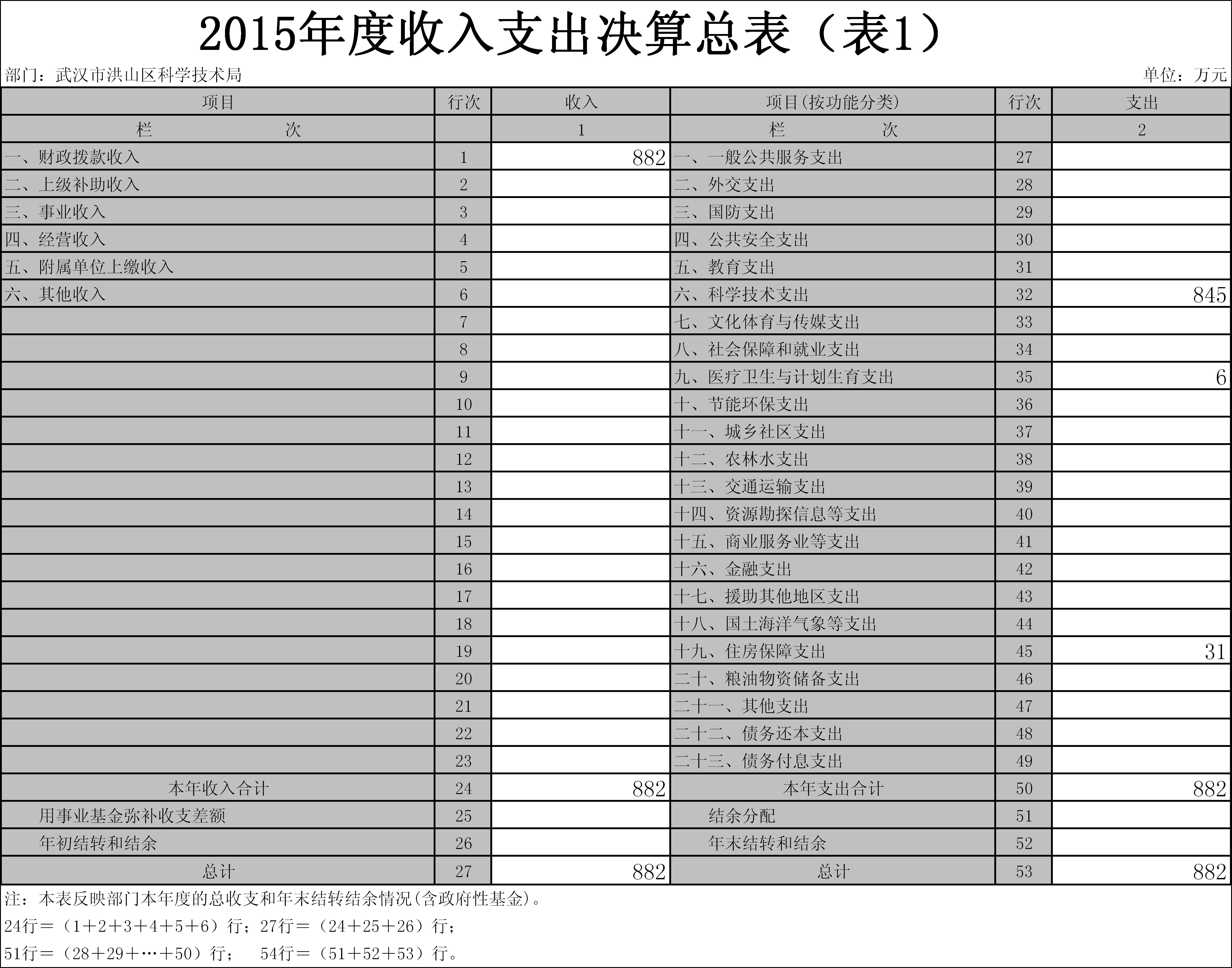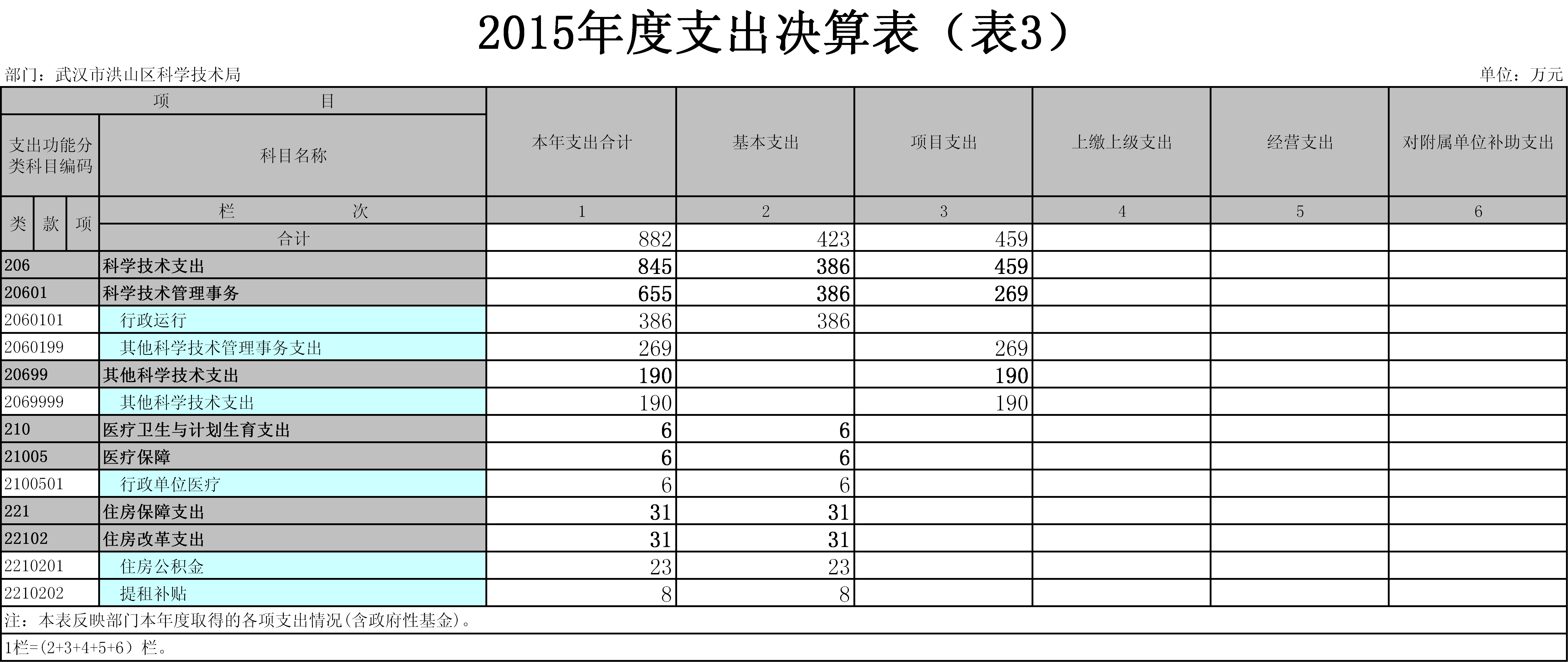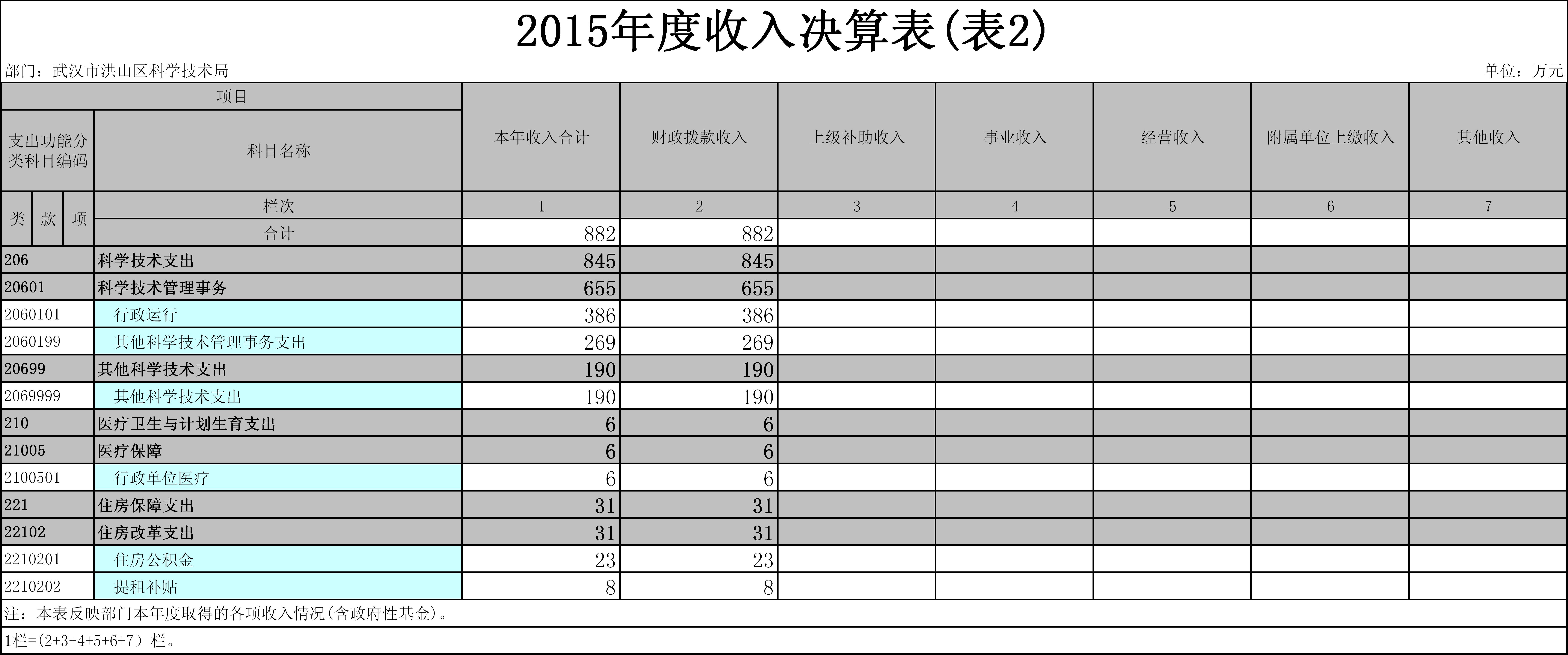 名 称:2015年度武汉市洪山区科学技术局部门决算 |
