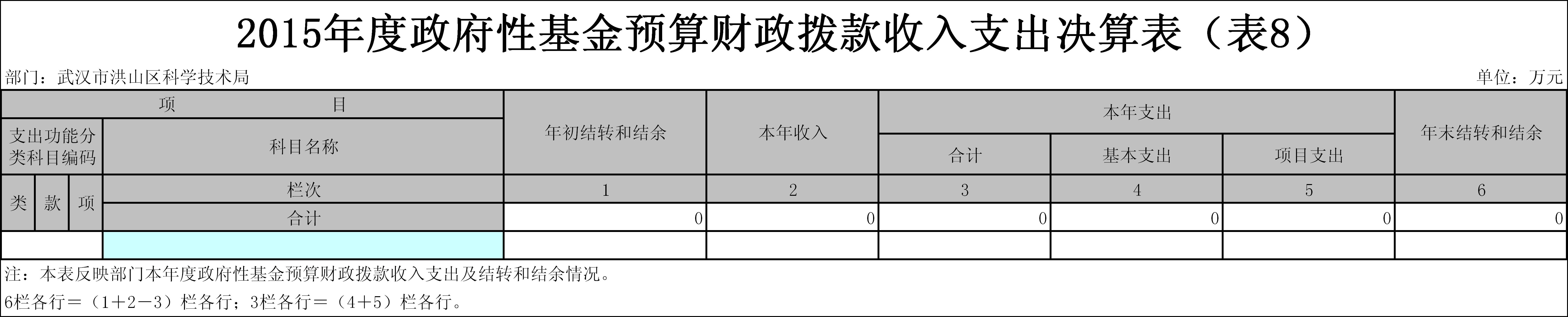 2015年度武汉市洪山区科学技术局无政府性基金预算财政拨款和支出。