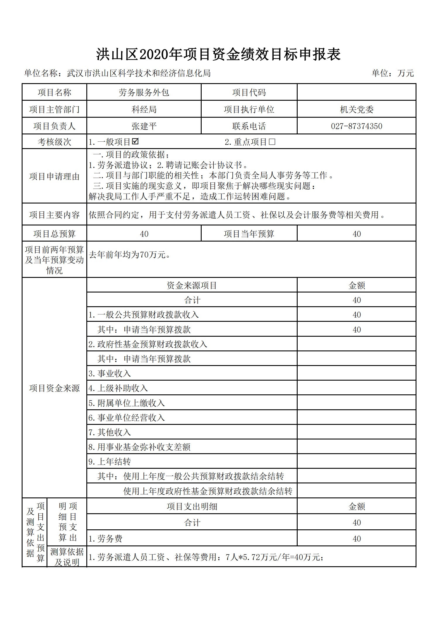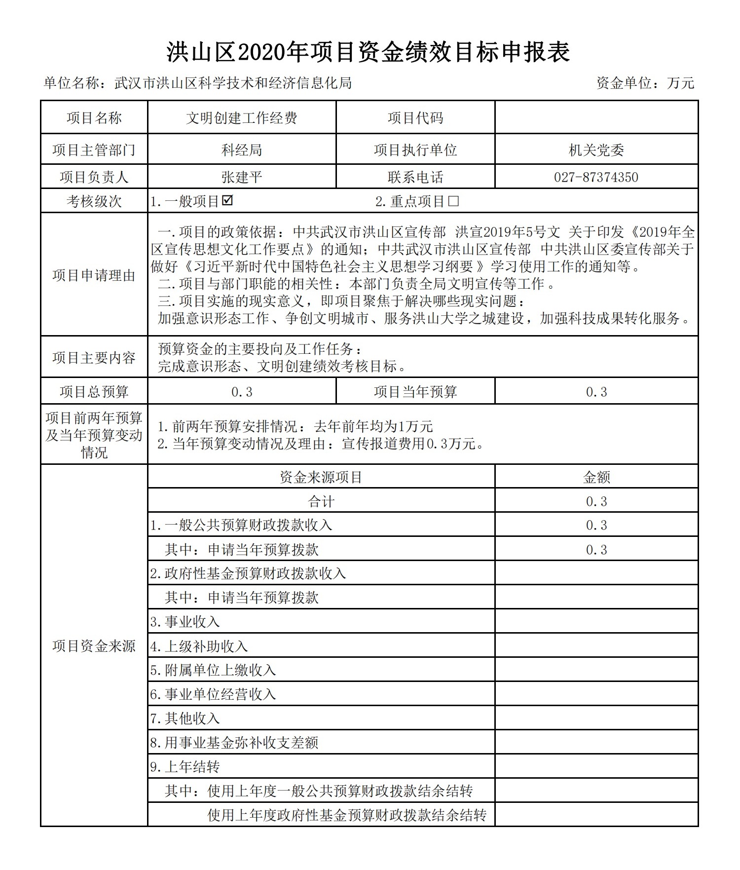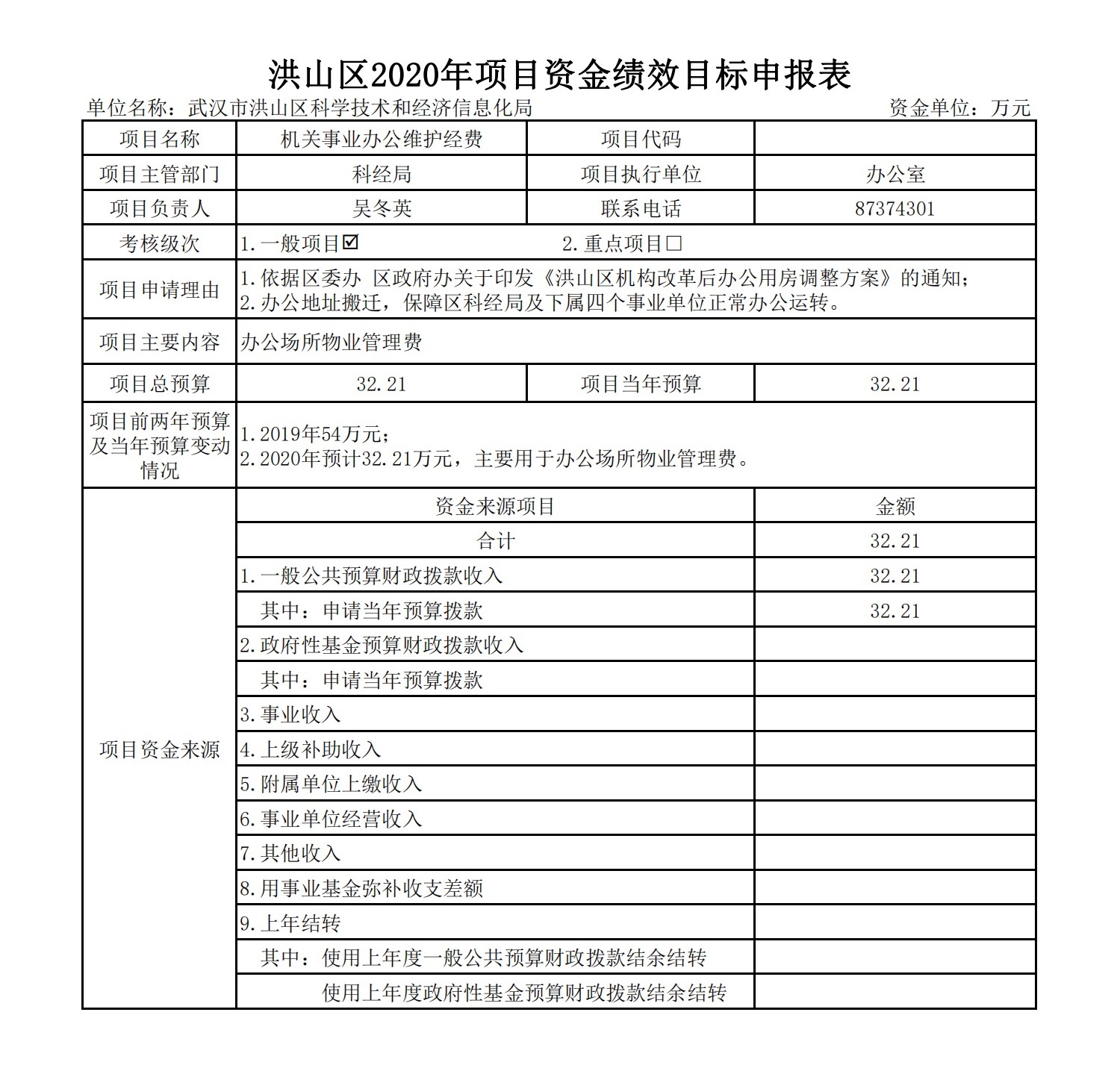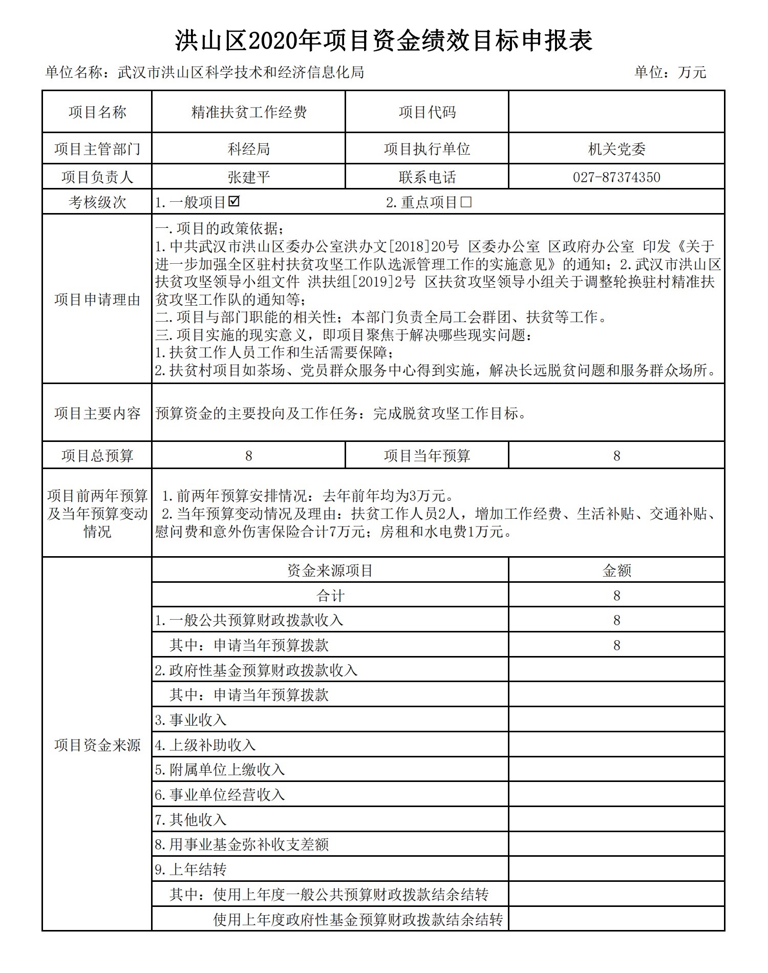 名 称:洪山区科学技术和经济信息化局2020年项目资金绩效目标申报表