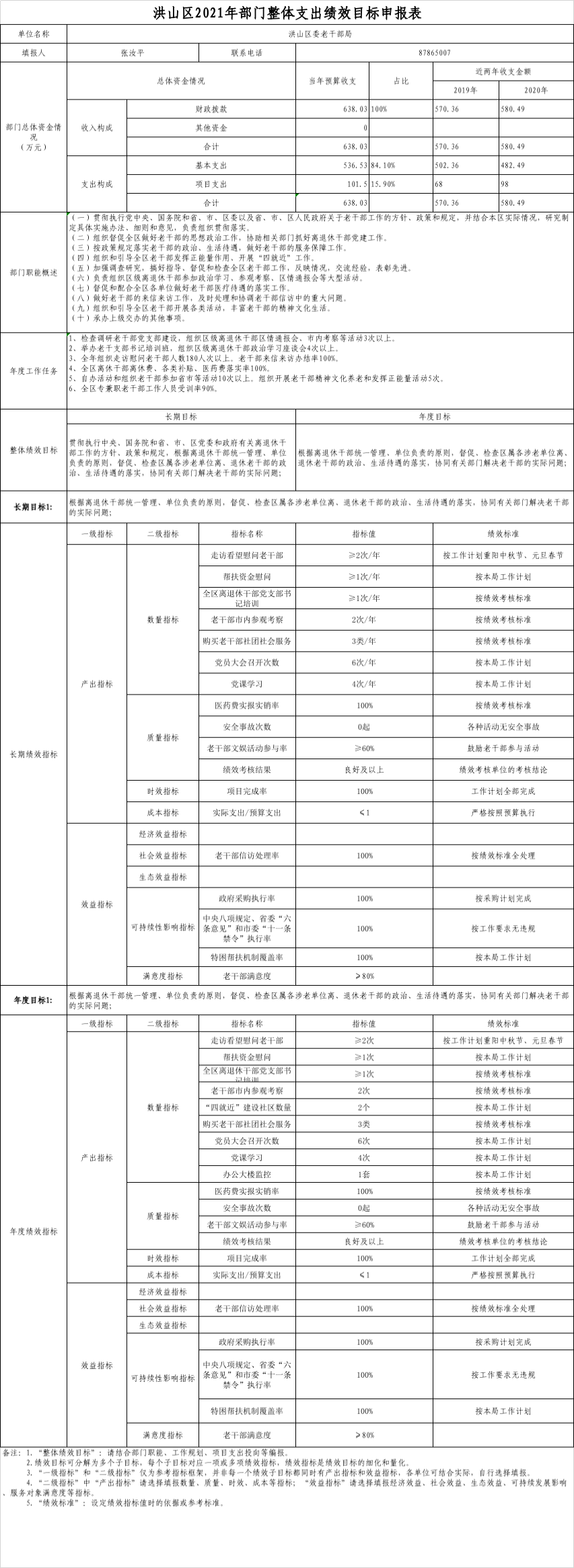名 称:中共武汉市洪山区委老干部局2021年部门整体支出绩效目标表
