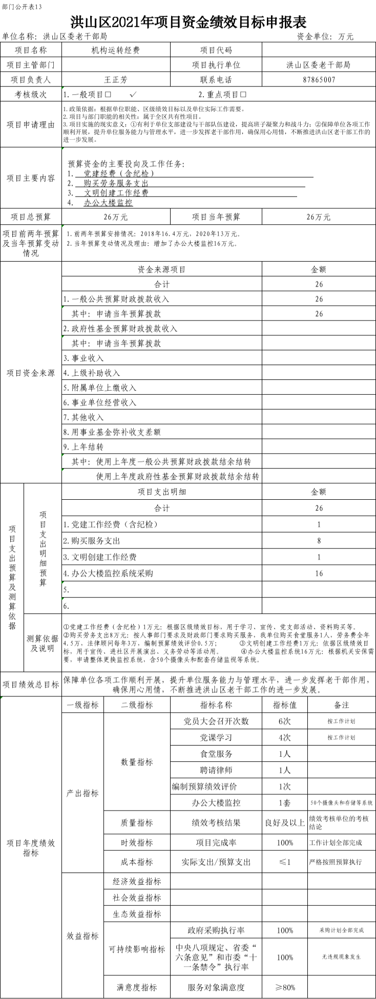 名 称:中共武汉市洪山区委老干部局2021年项目支出绩效目标表