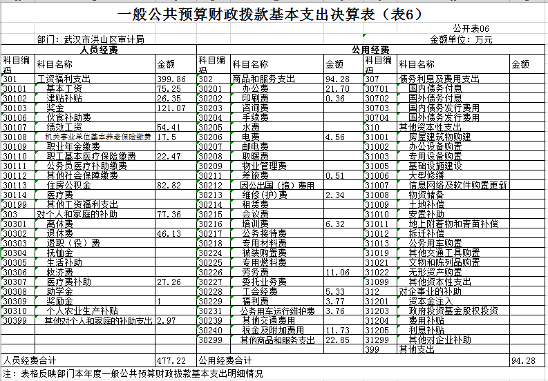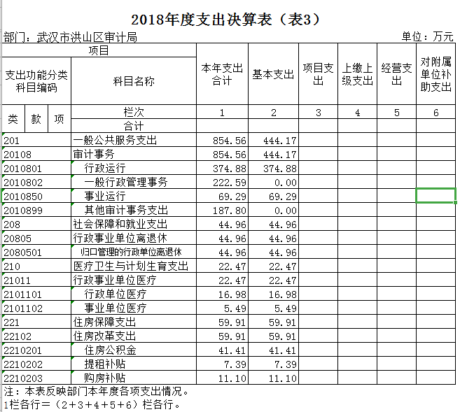第二部分 武汉市洪山区审计局2018年度部门决算表