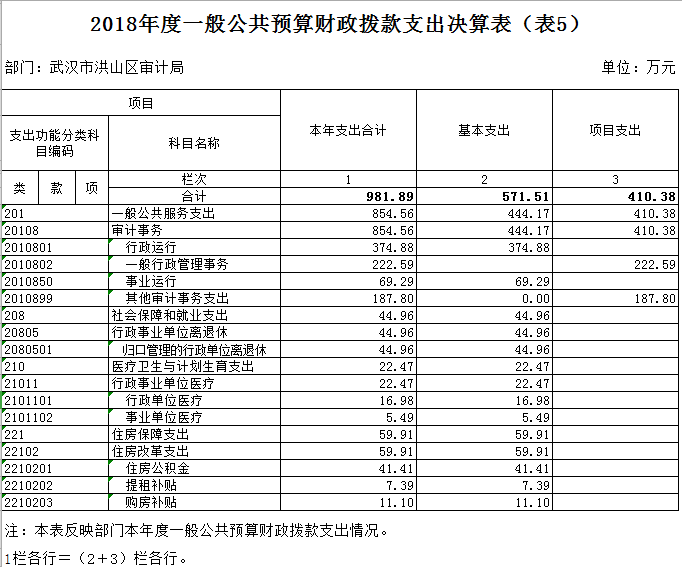 名 称:2018年度武汉市洪山区审计局部门决算 |