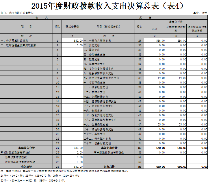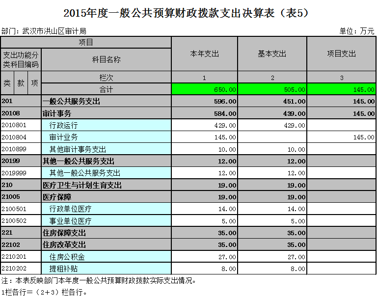 名 称:2015年度武汉市洪山区审计局部门决算 |