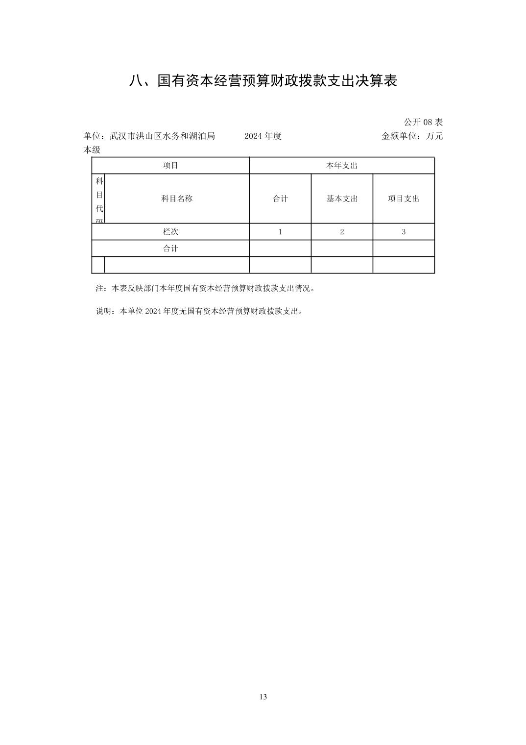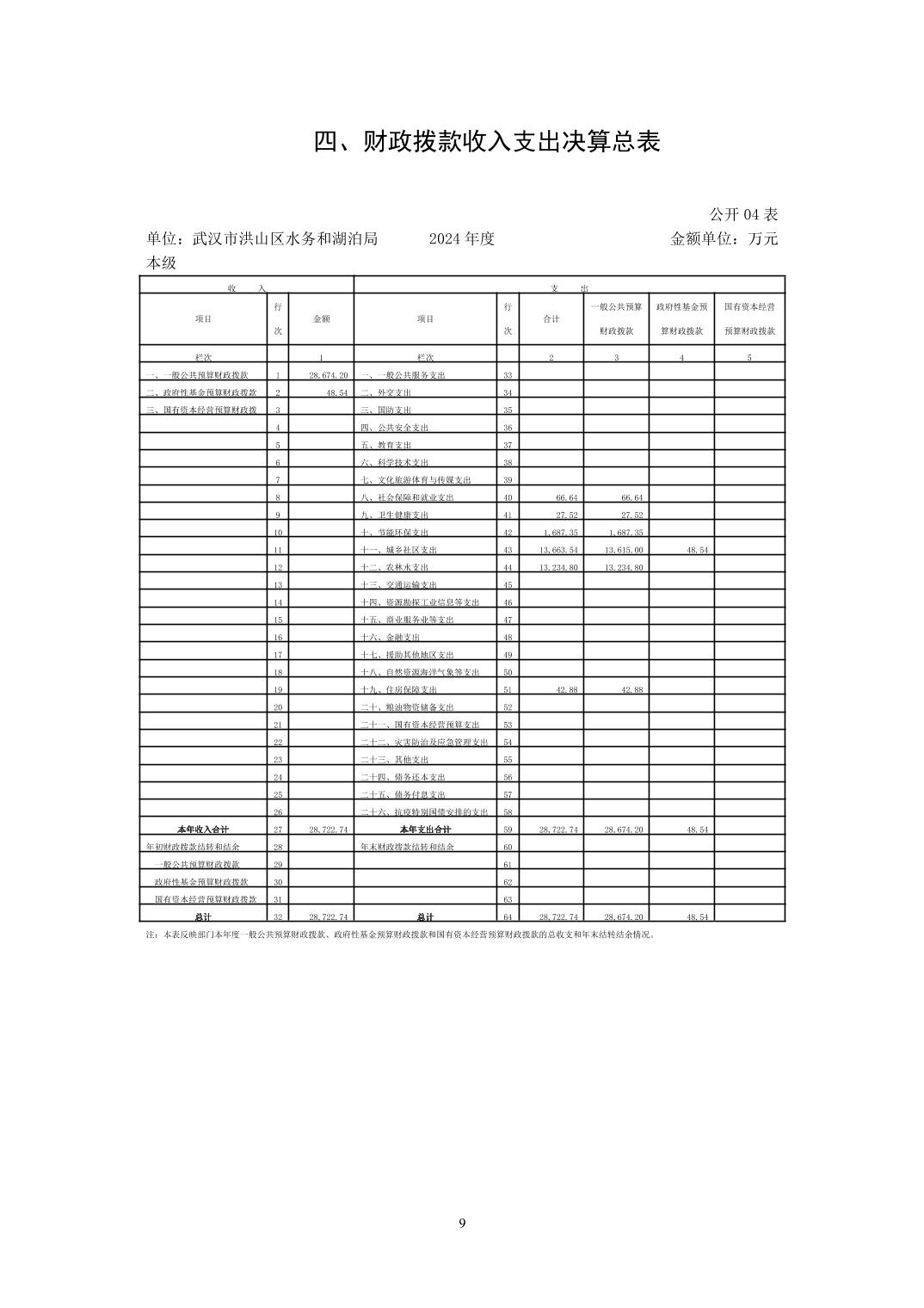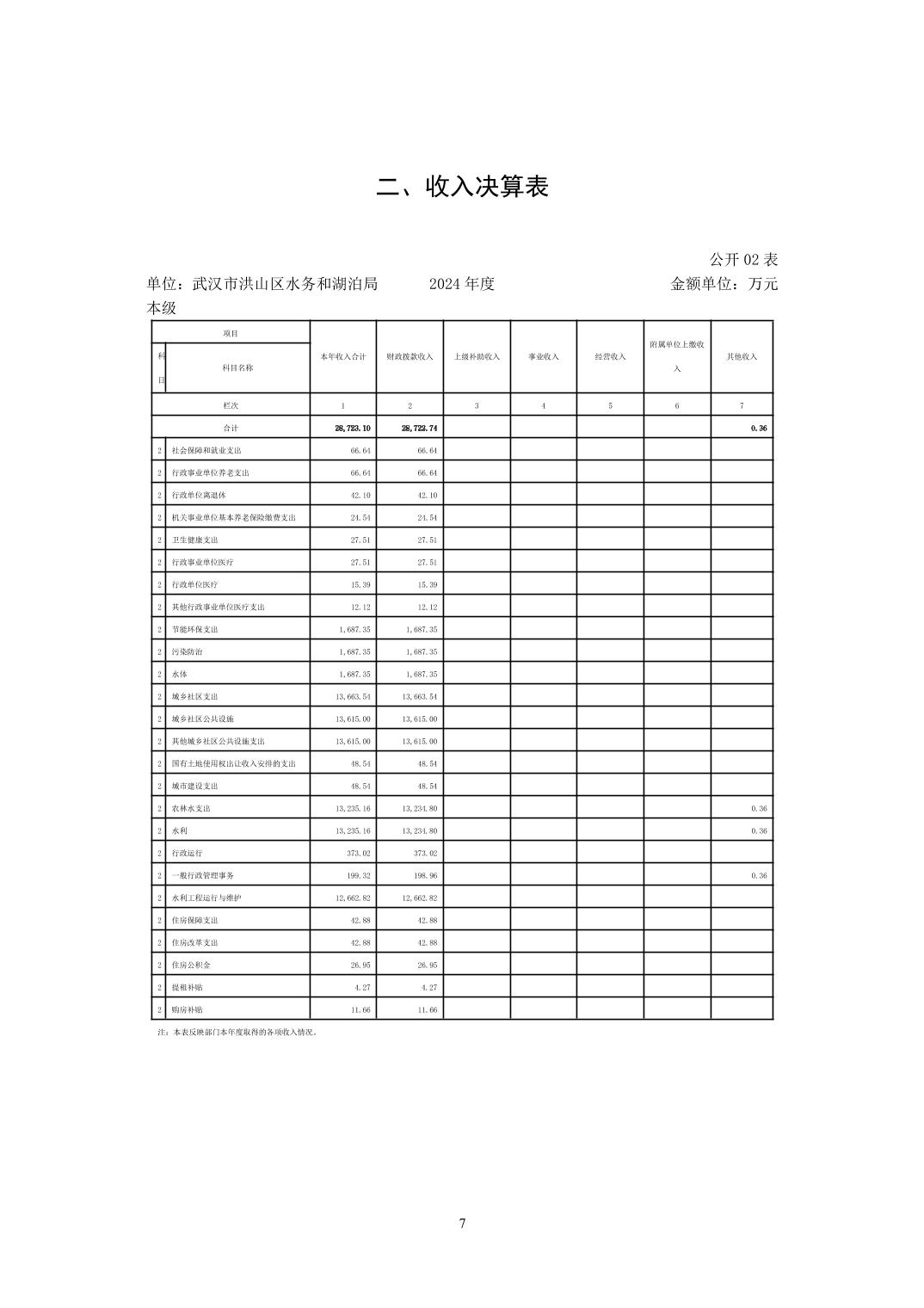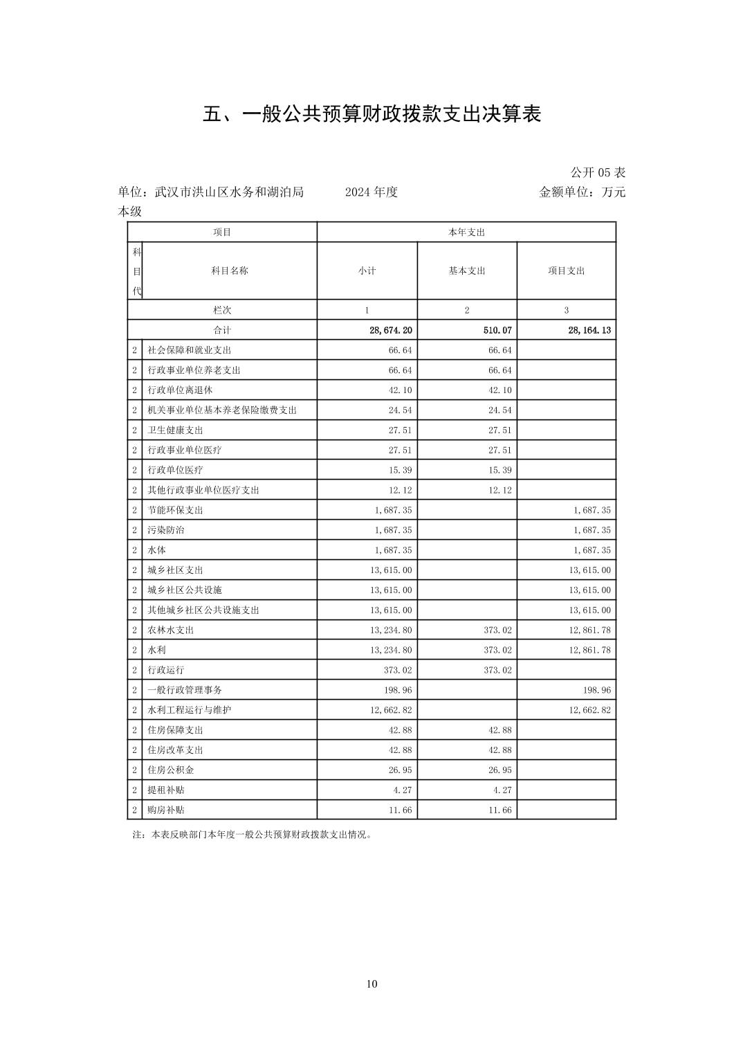 名 称:武汉市洪山区水务和湖泊局(本级)2024年度单位决算公开
