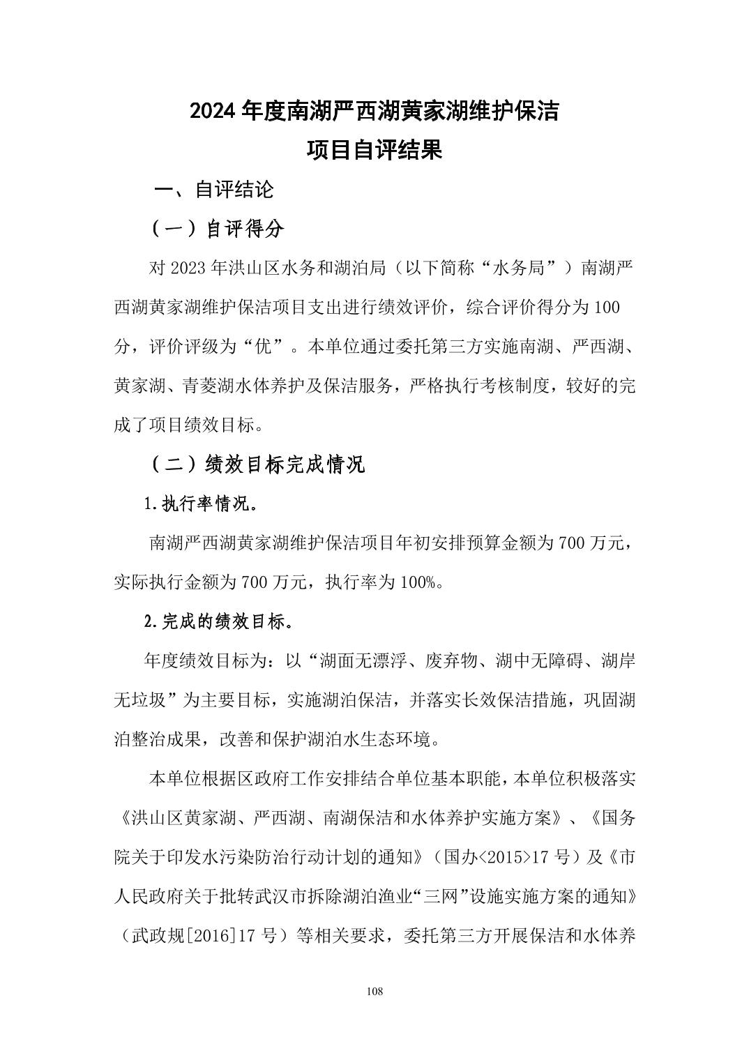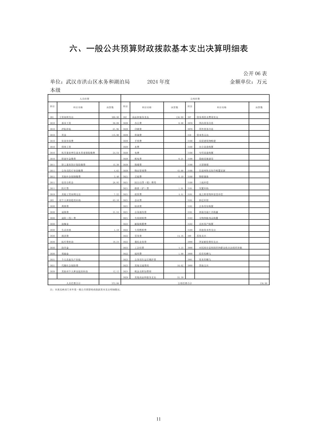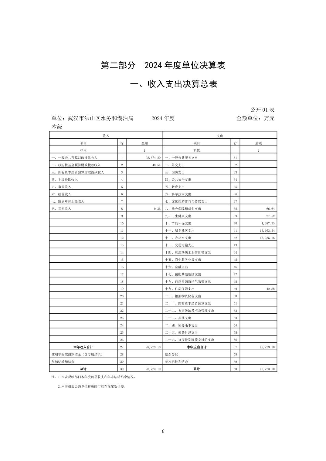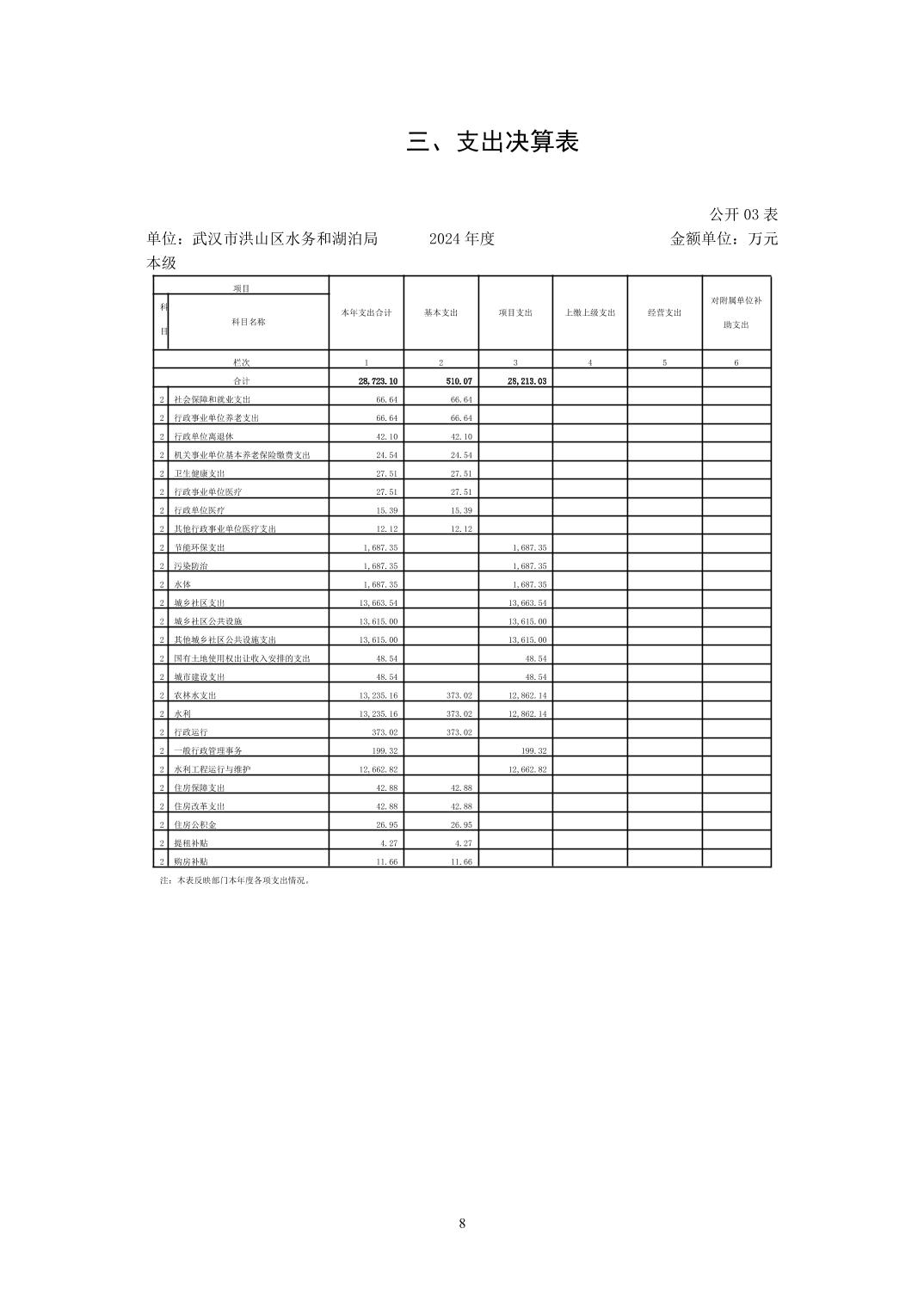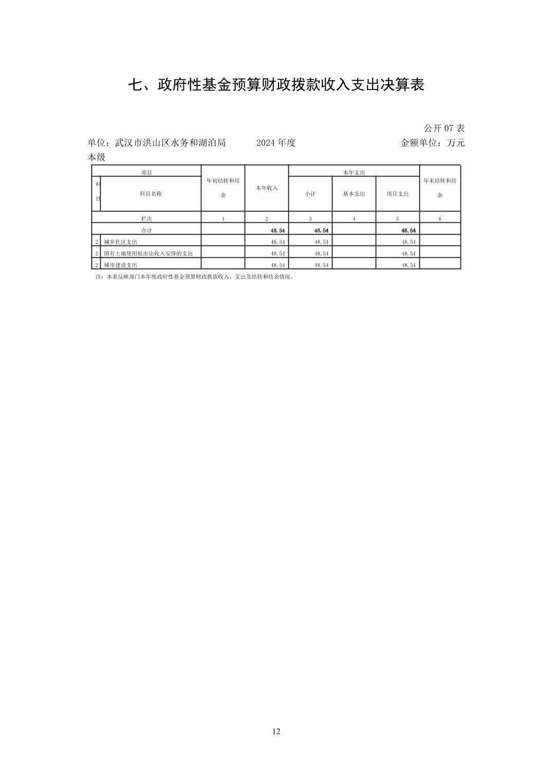 名 称:武汉市洪山区水务和湖泊局(本级)2024年度单位决算公开