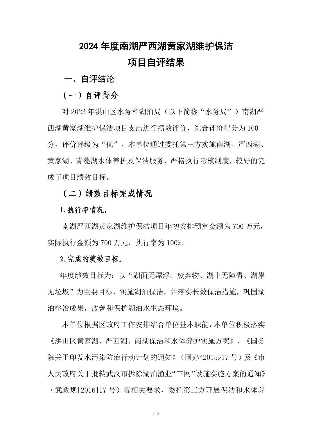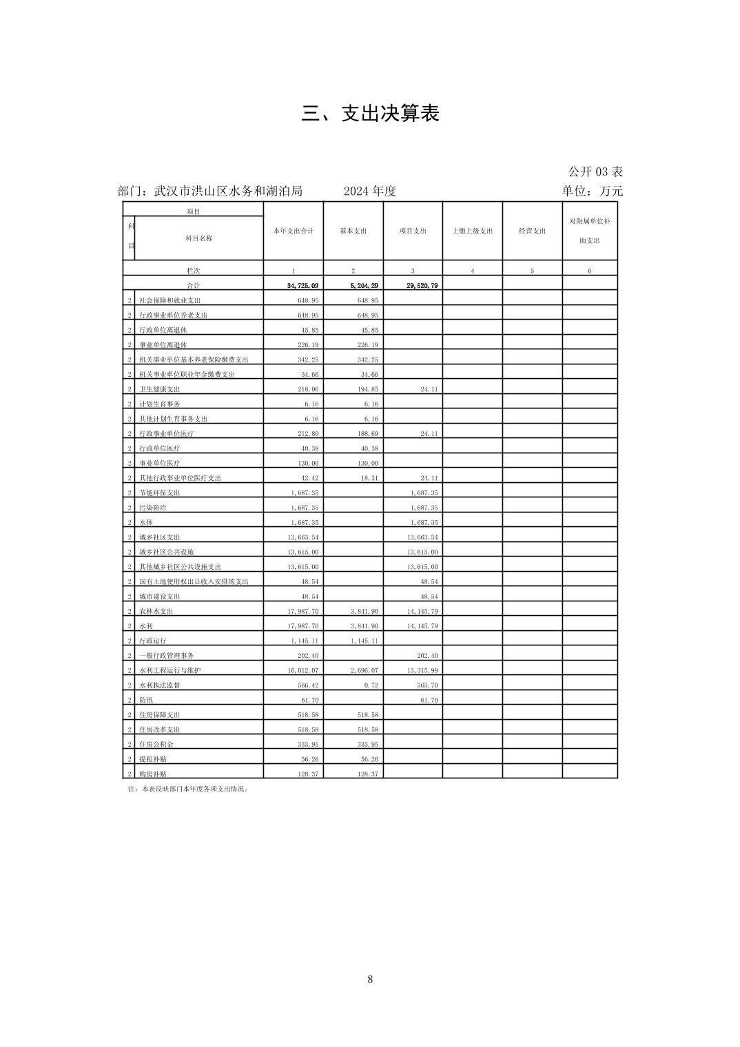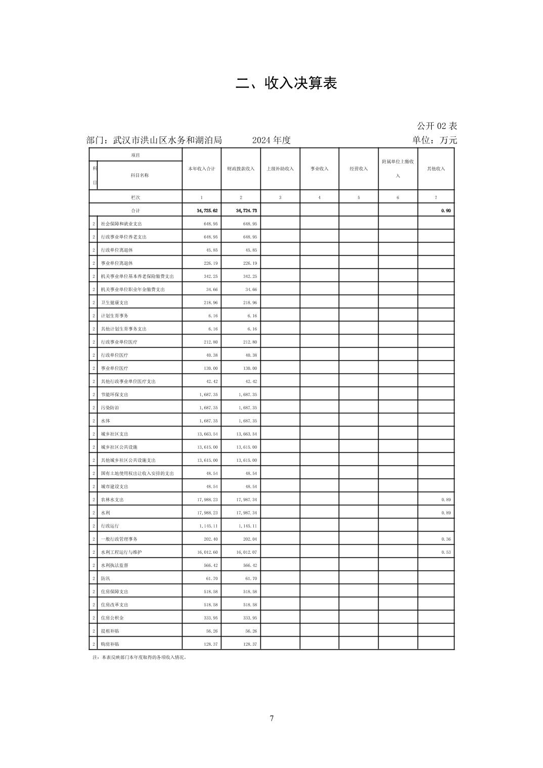 名 称:武汉市洪山区水务和湖泊局(汇总)2024年度部门决算公开