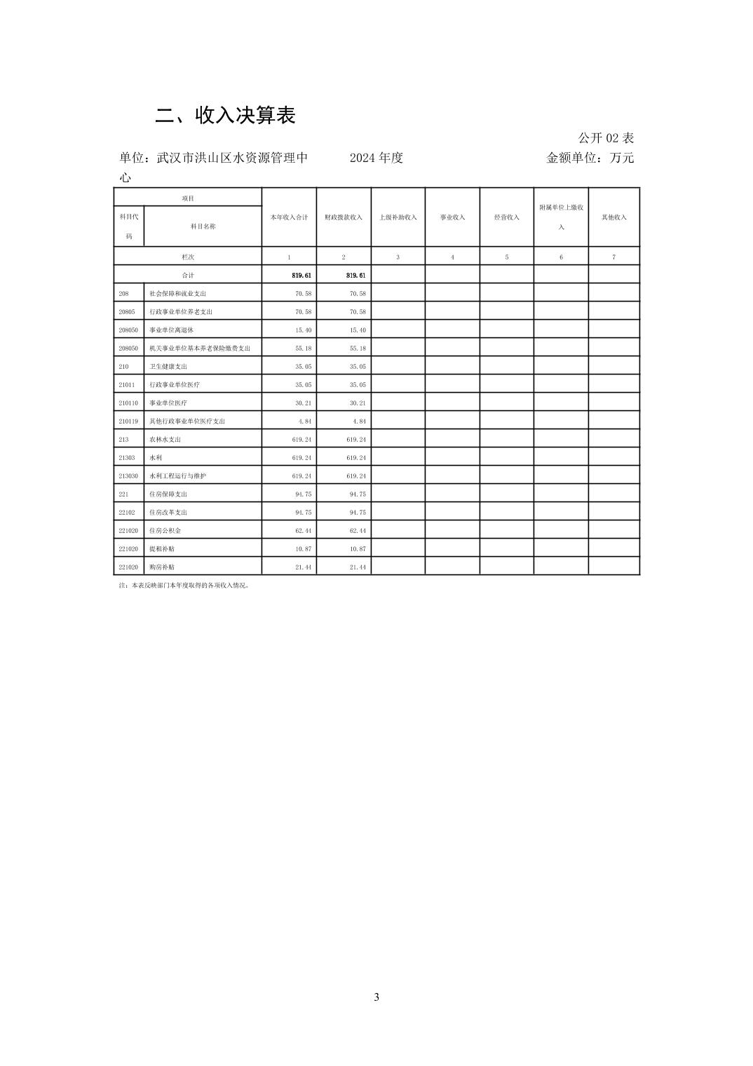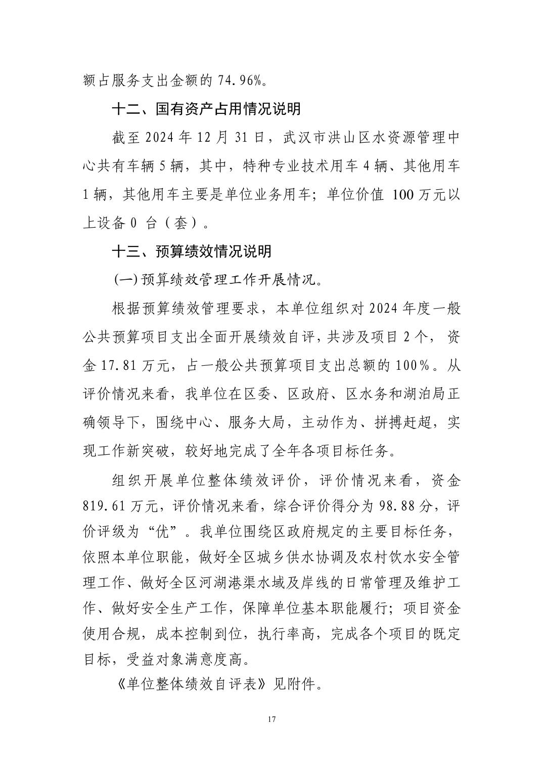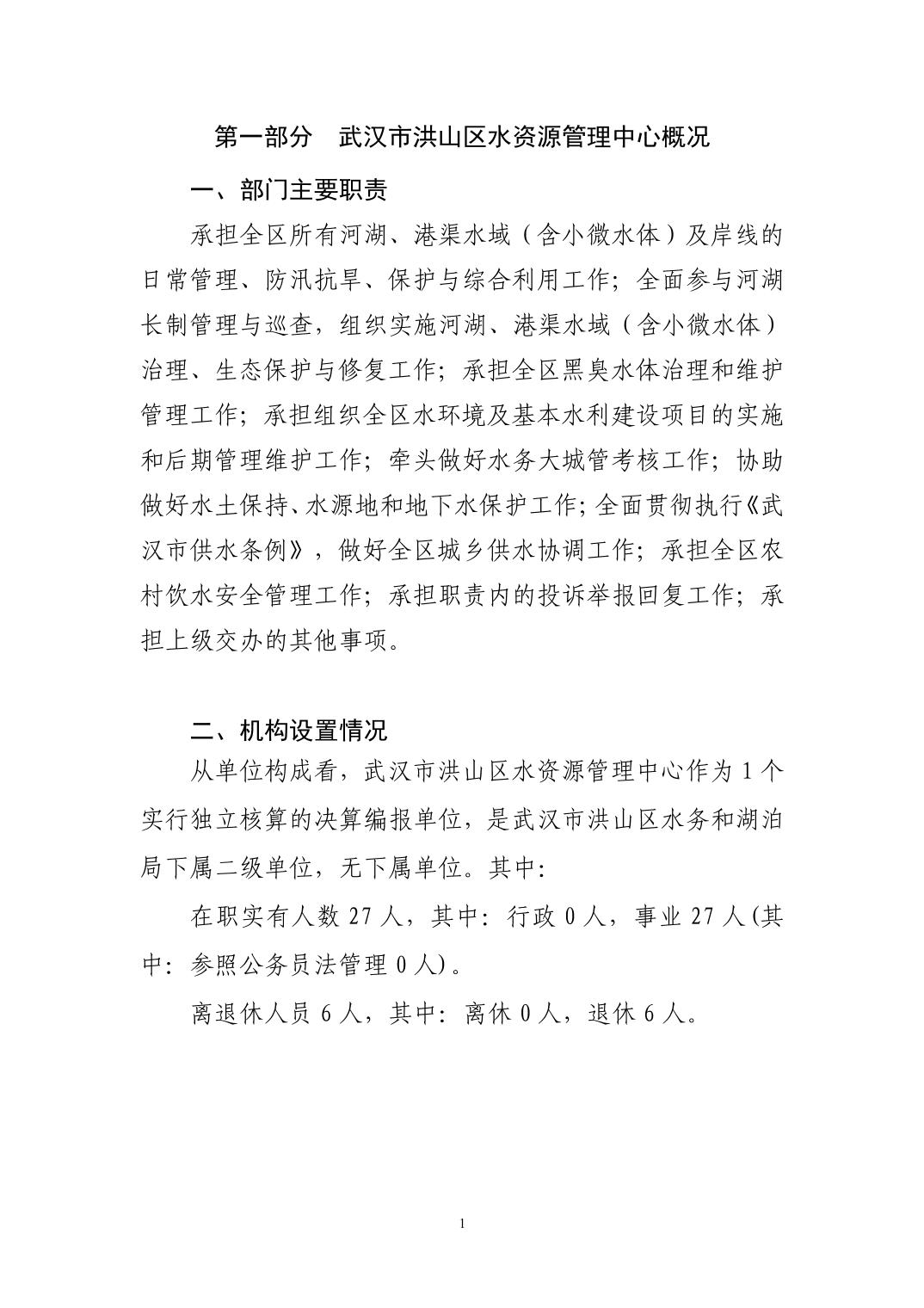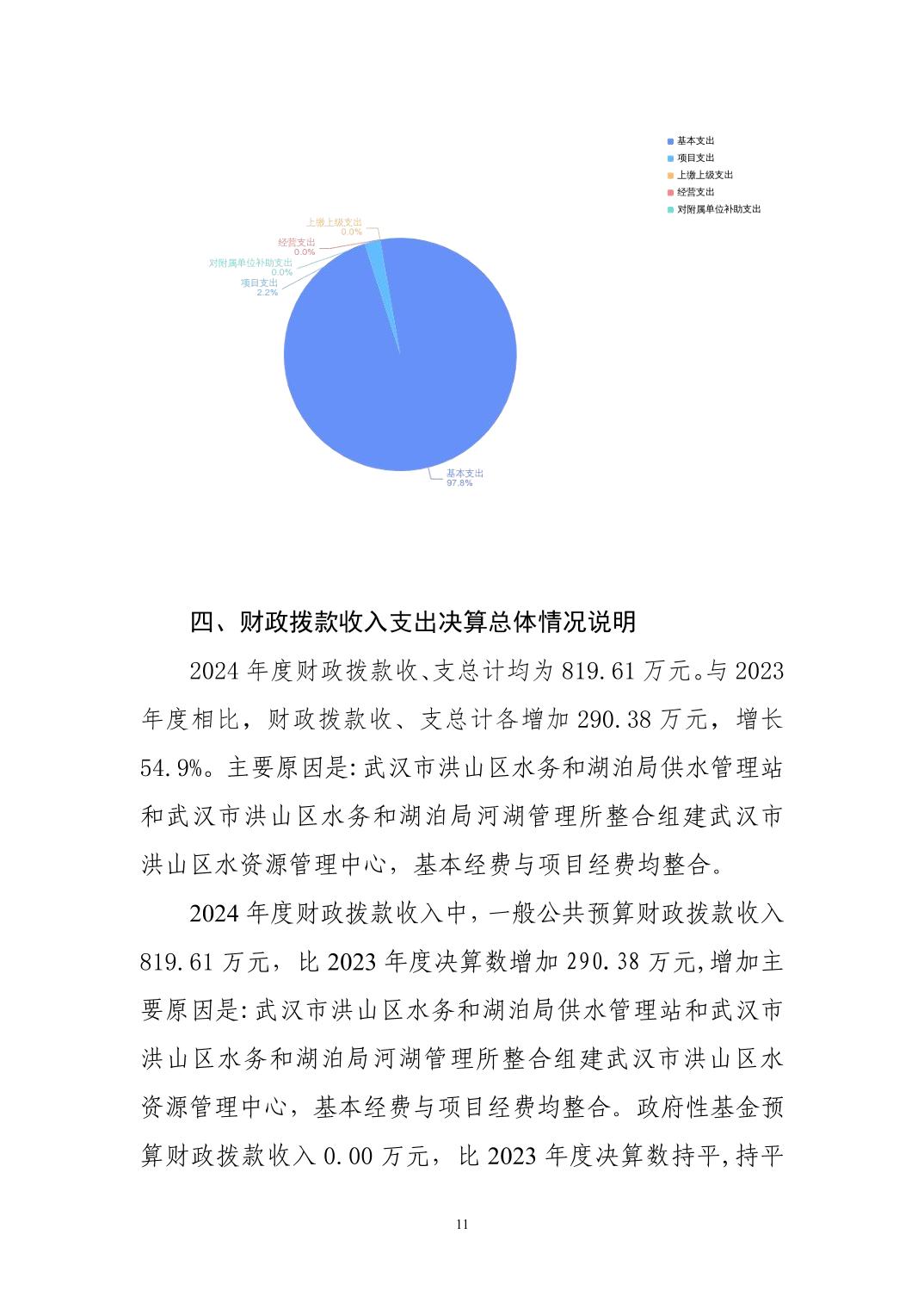 名 称:武汉市洪山区水资源管理中心2024年度单位决算公开