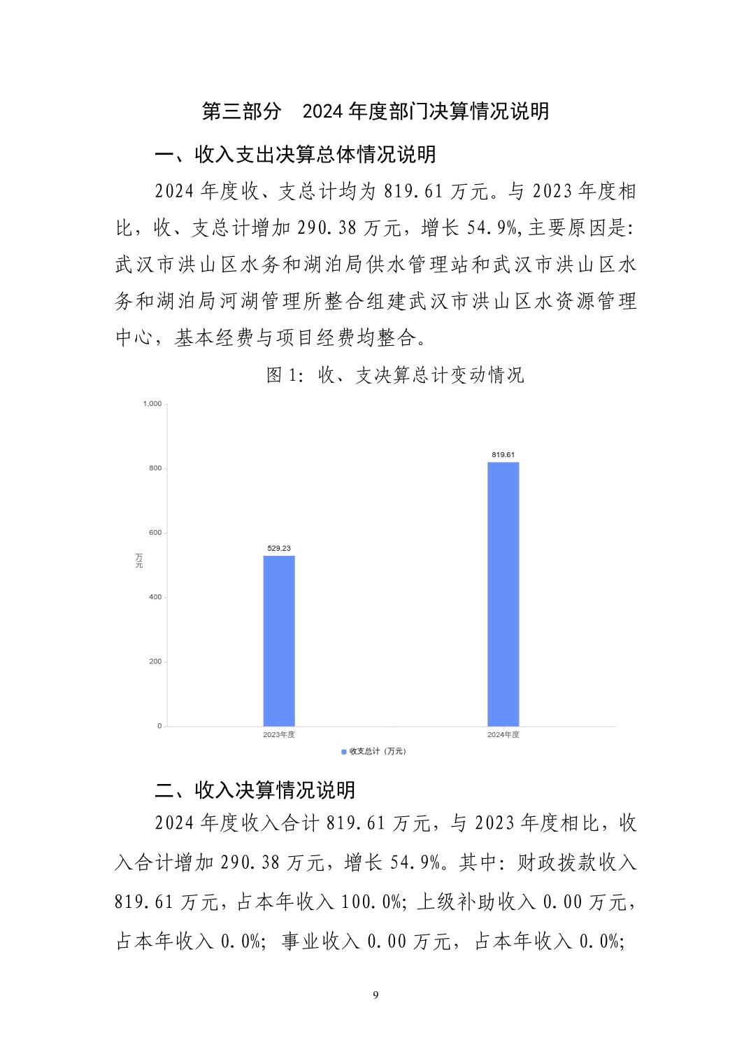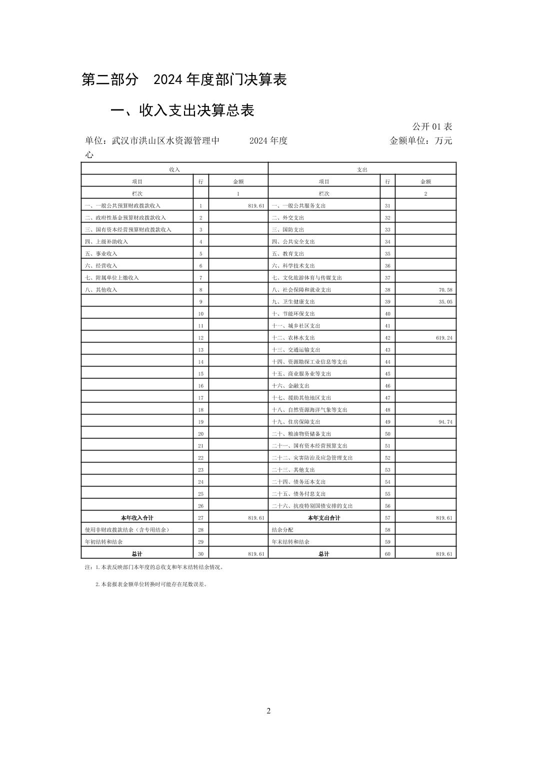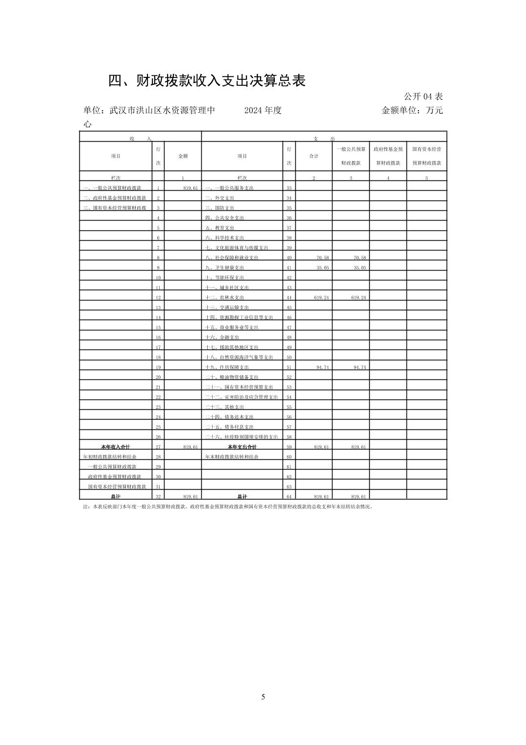 名 称:武汉市洪山区水资源管理中心2024年度单位决算公开