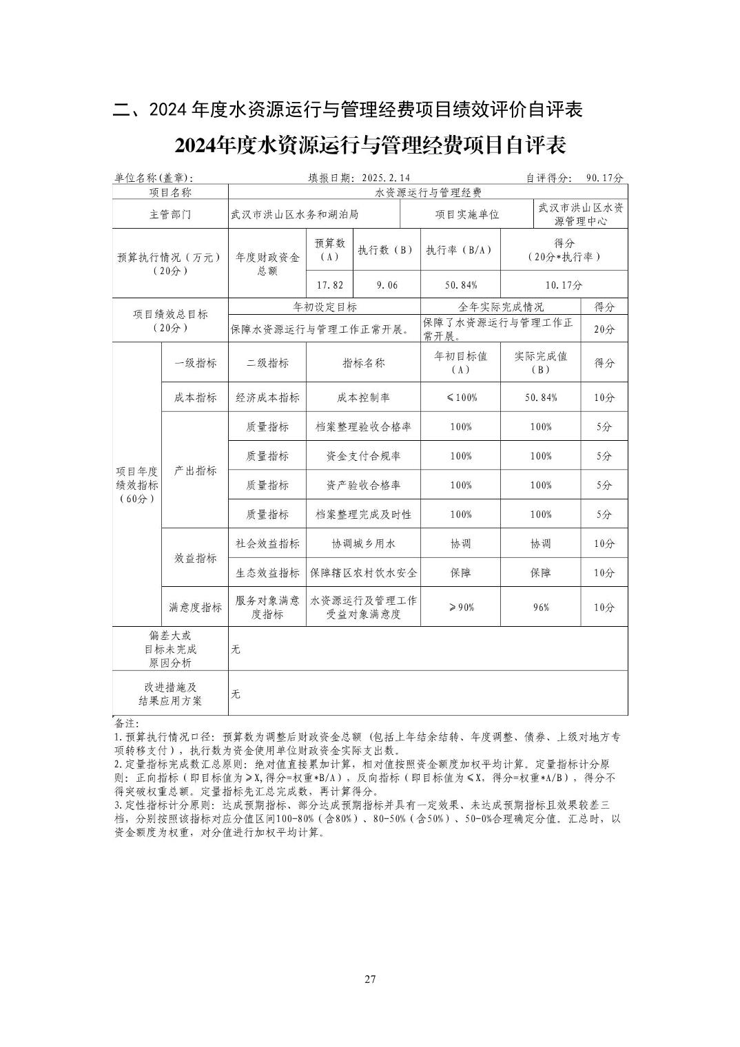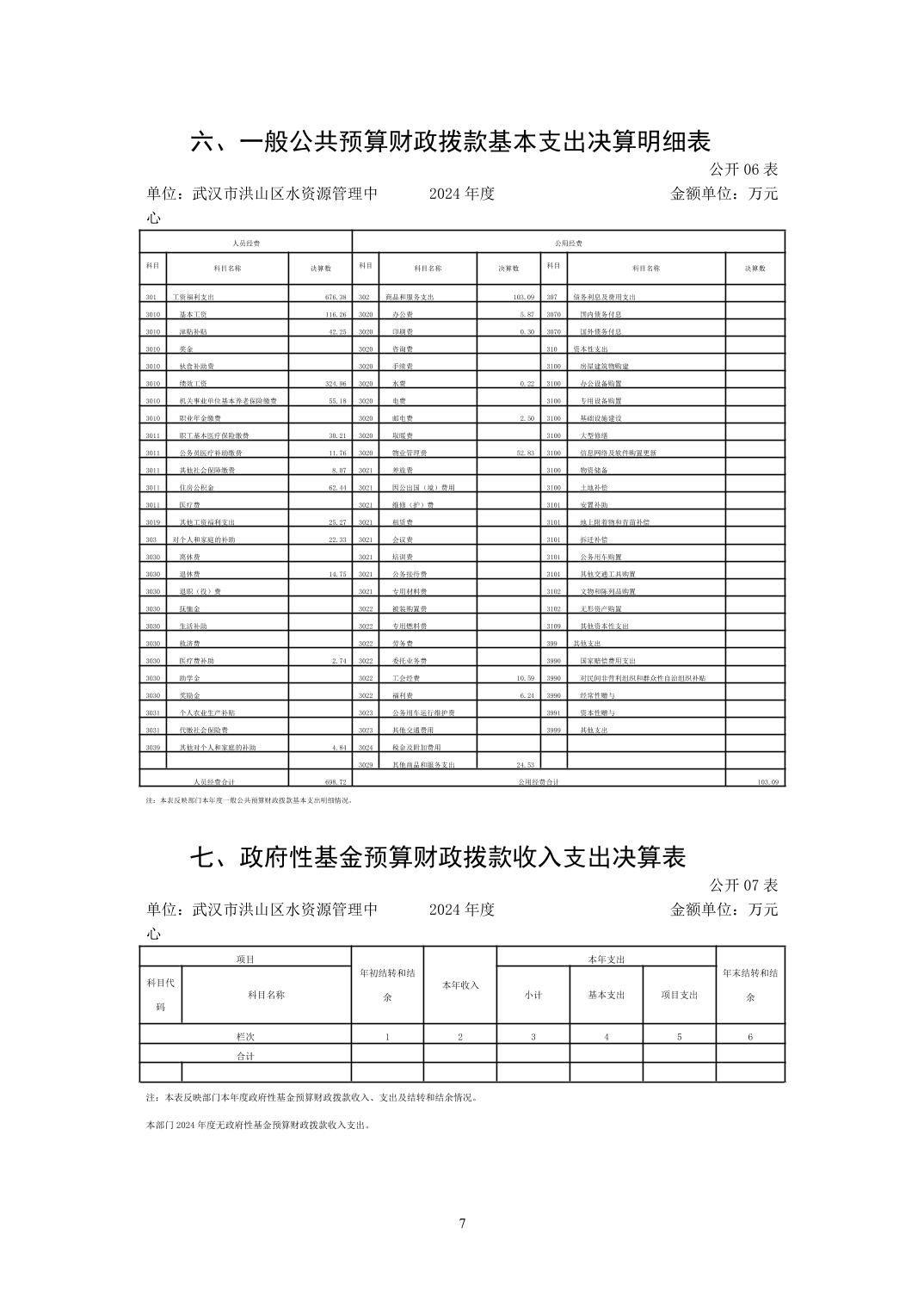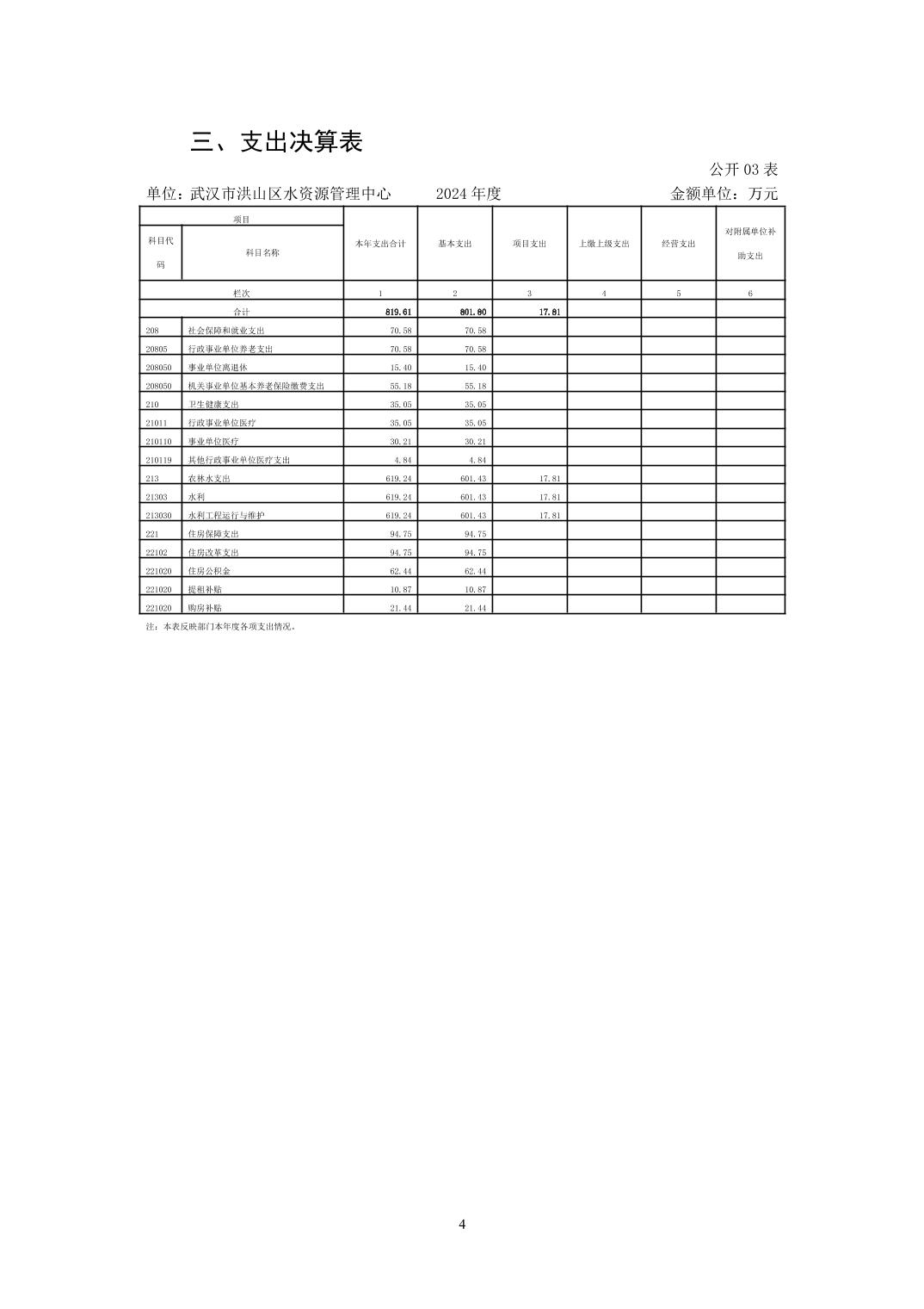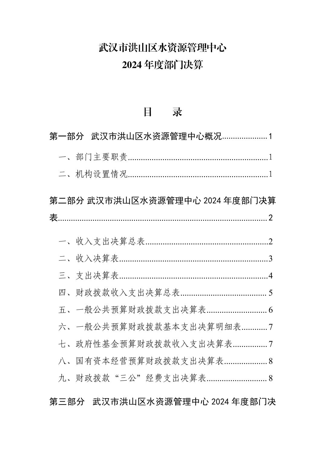 名 称:武汉市洪山区水资源管理中心2024年度单位决算公开