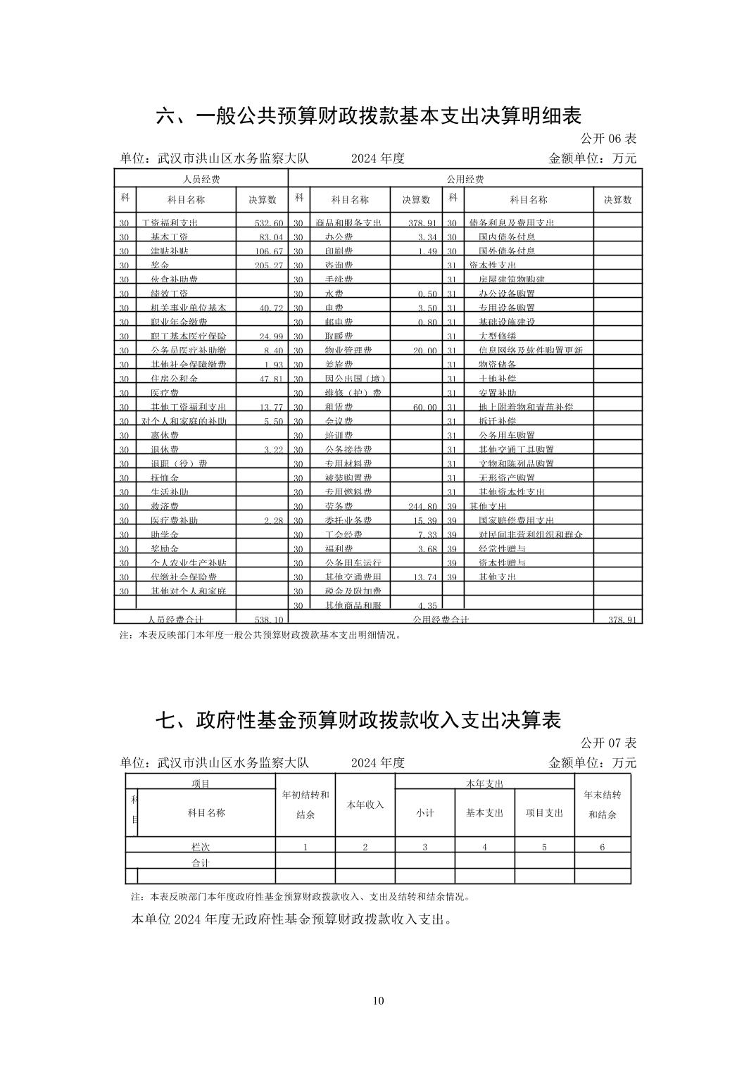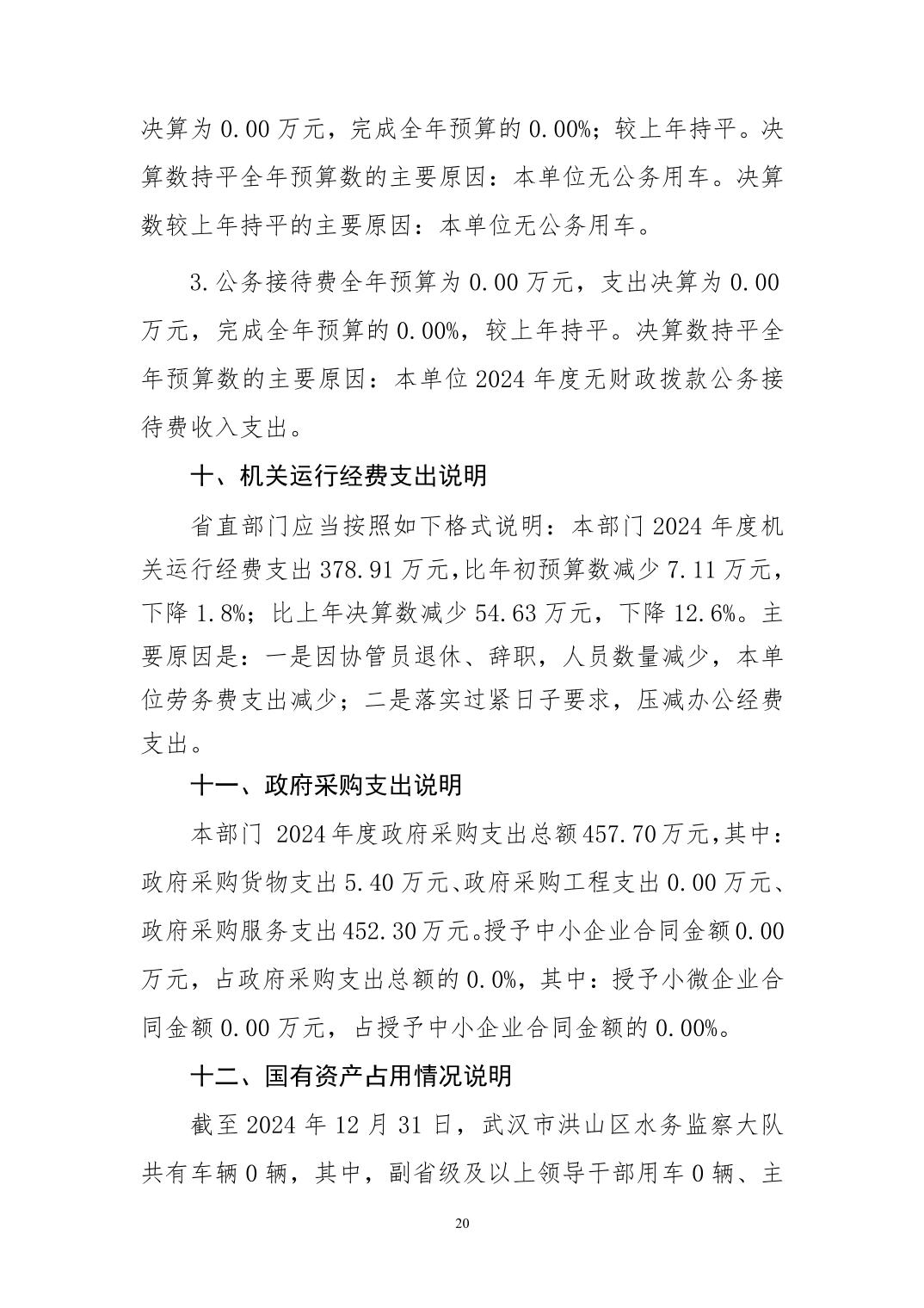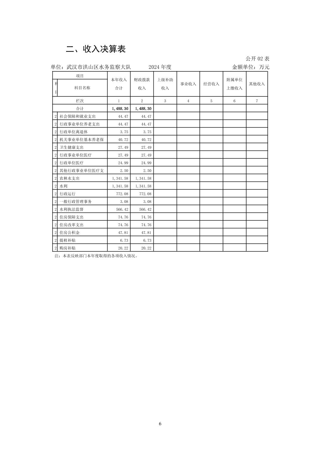 名 称:武汉市洪山区水务监察大队2024年度单位决算公开