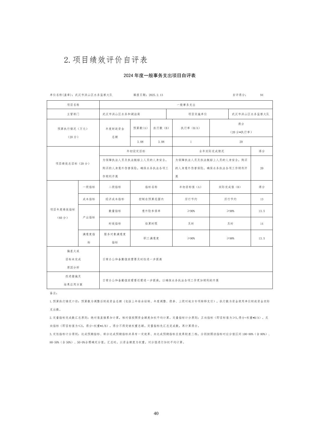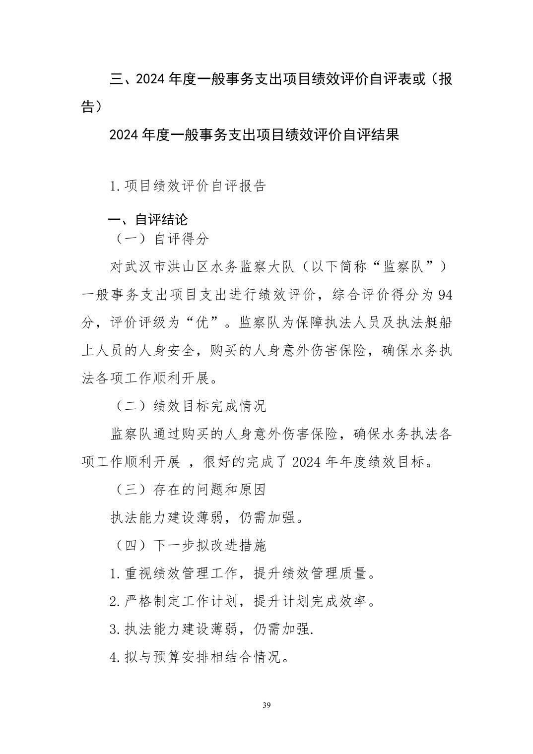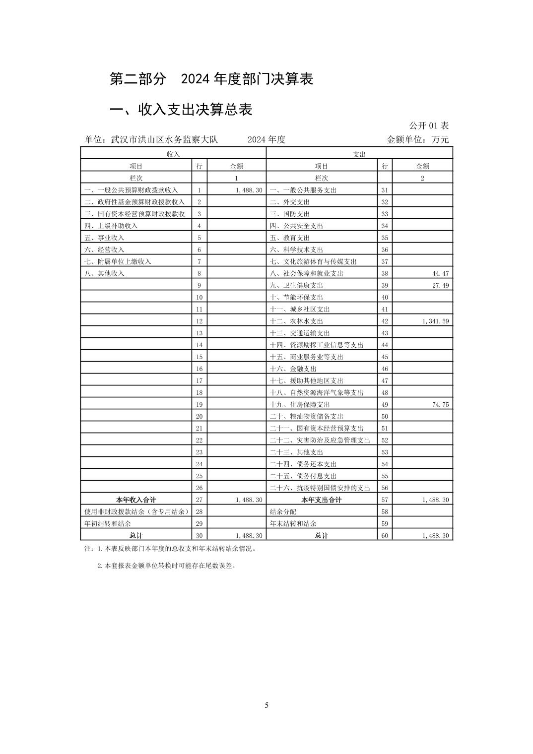 名 称:武汉市洪山区水务监察大队2024年度单位决算公开