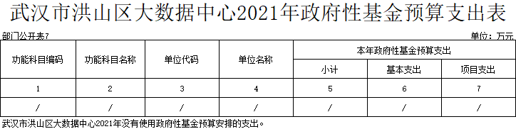 名 称:武汉市洪山区大数据中心2021年政府性基金预算支出表