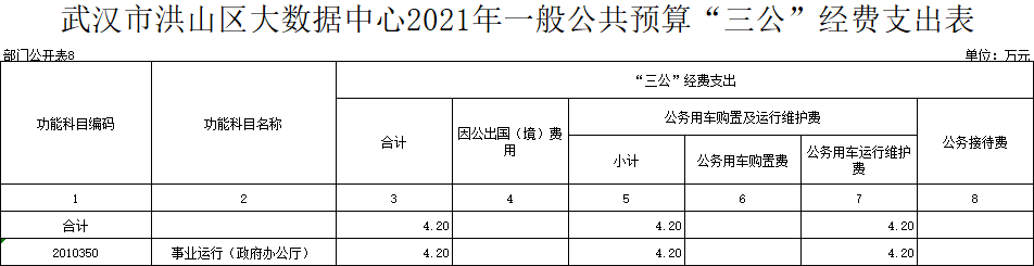 名 称:武汉市洪山区大数据中心2021年一般公共预算“三公”经费支出表