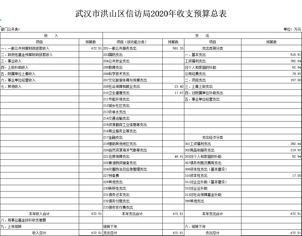 名 称:武汉市洪山区信访局2020年收支预算总表