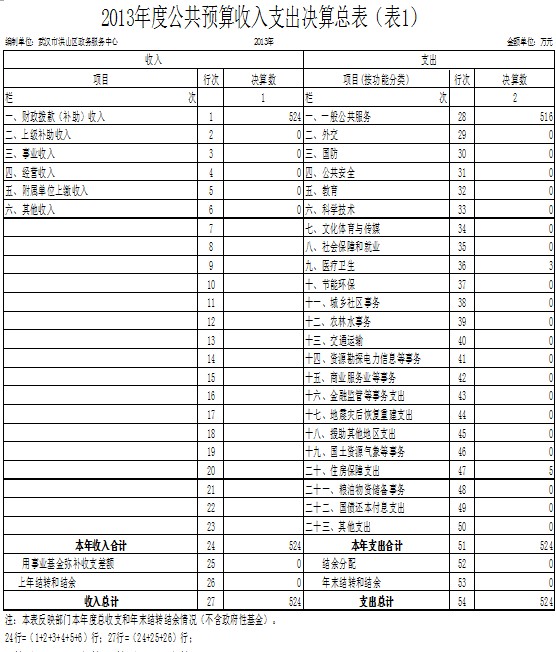 二、武汉市洪山区政务服务中心2013年度公共预算收入支出决算总表