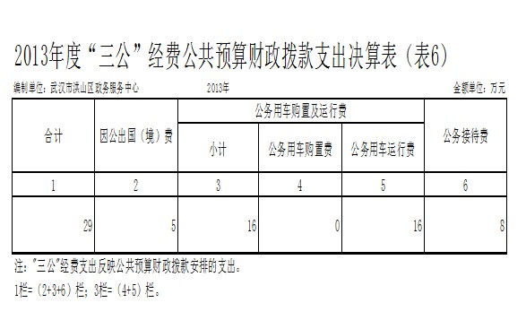 八、武汉市洪山区政务服务中心2013年度“三公”经费公共预算财政拨款支出决算表