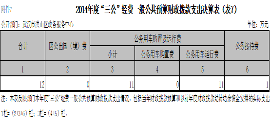 七、2014年度一般公共预算财政拨款“三公”经费支出决算表(表7)