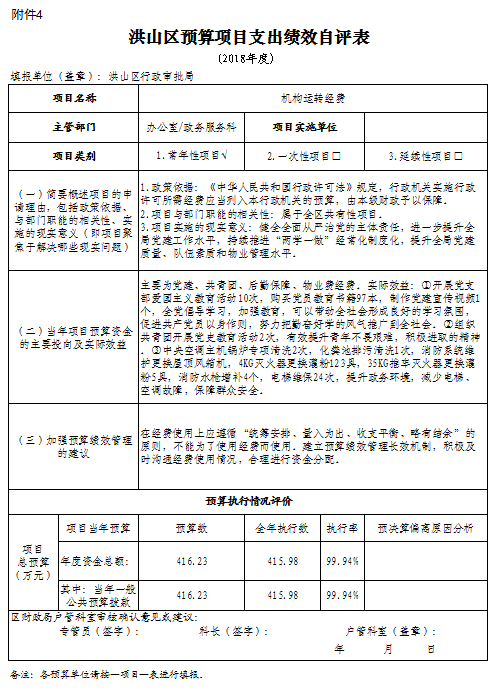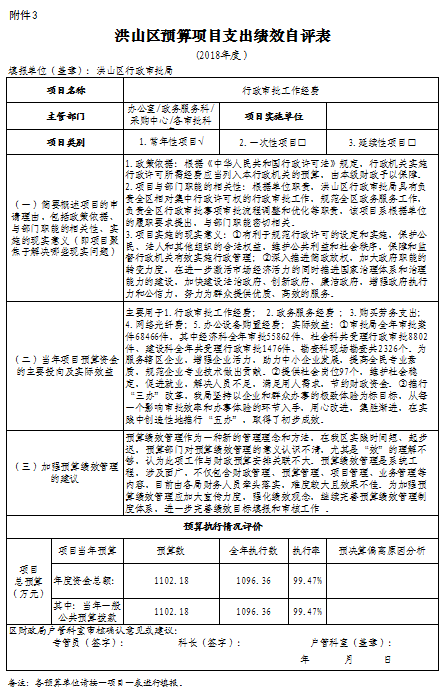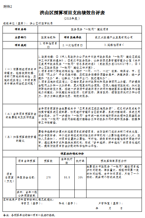 (武汉市洪山区行政审批局项目支出绩效自评报告见附件)