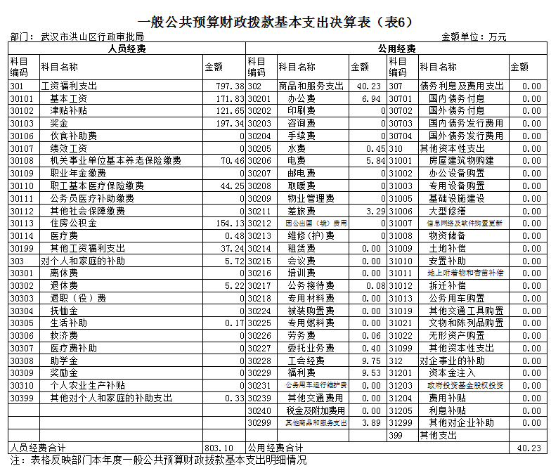 六、一般公共预算财政拨款基本支出决算表(表6)