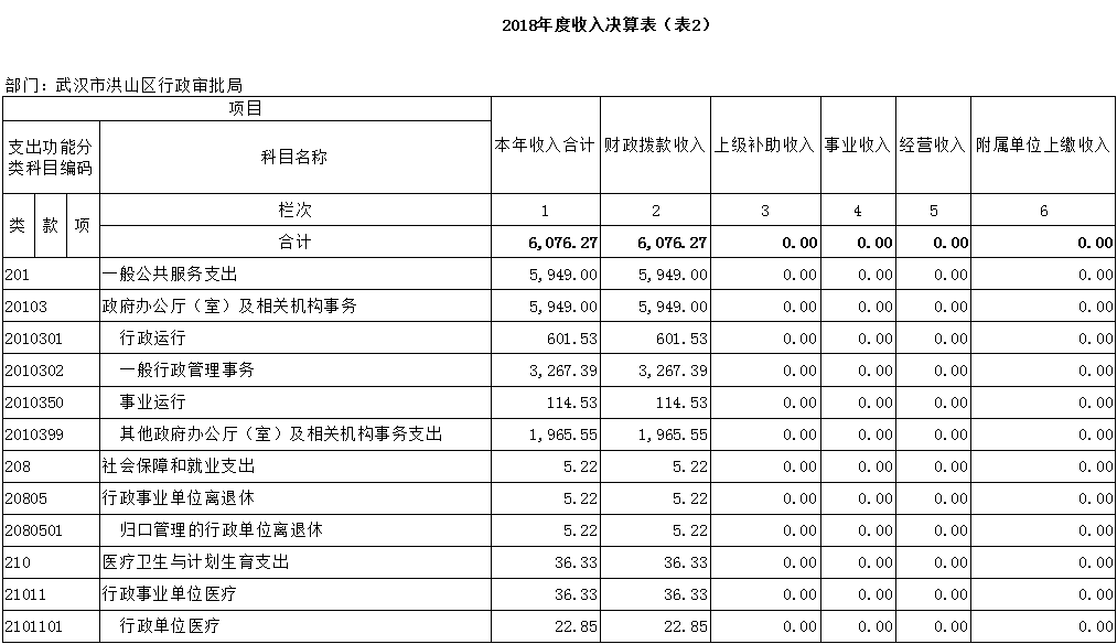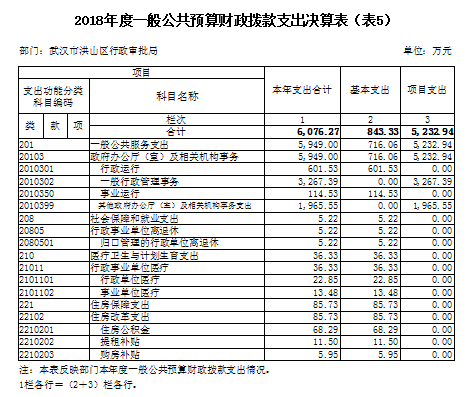 名 称:2018年度武汉市洪山区行政审批局决算 |