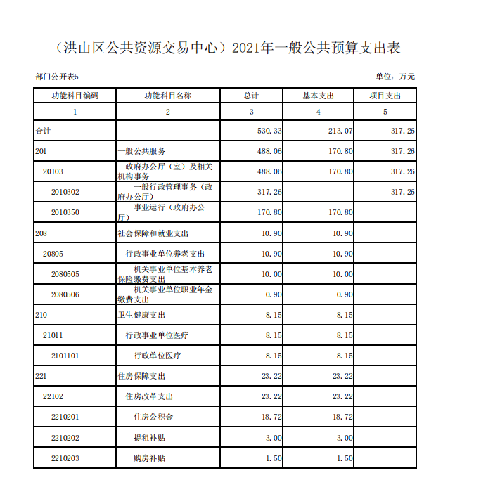 名 称:洪山区公共资源交易中心2021年一般公共预算支出表