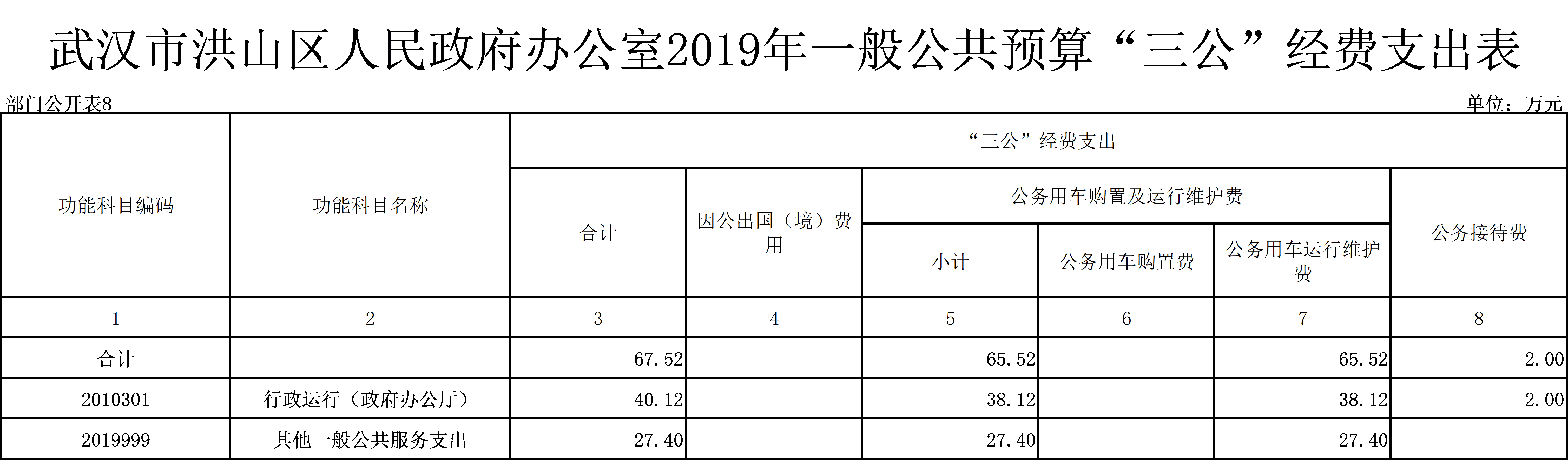 名 称:武汉市洪山区人民政府办公室2019年一般公共预算“三公”经费支出表