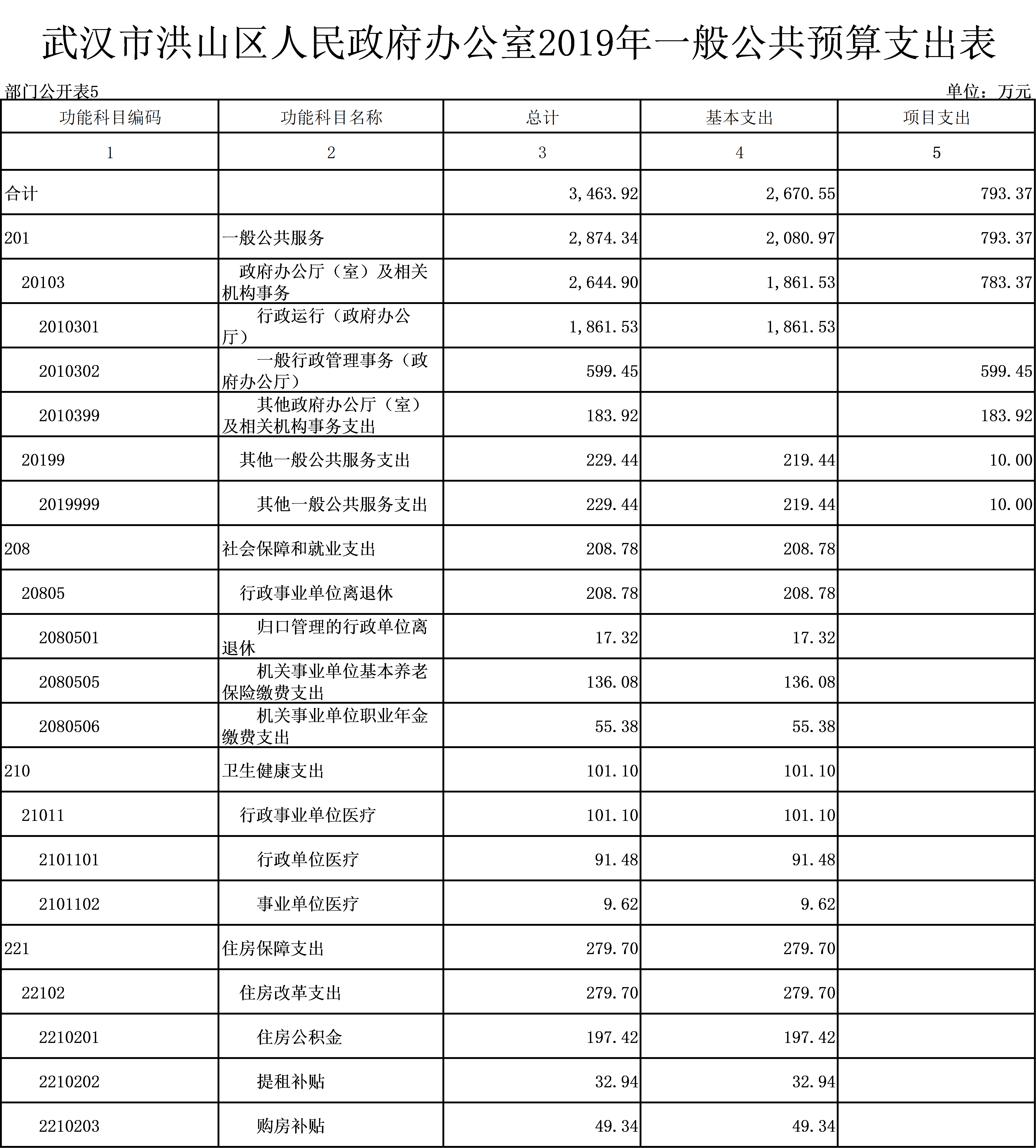 名 称:武汉市洪山区人民政府办公室2019年一般公共预算支出表
