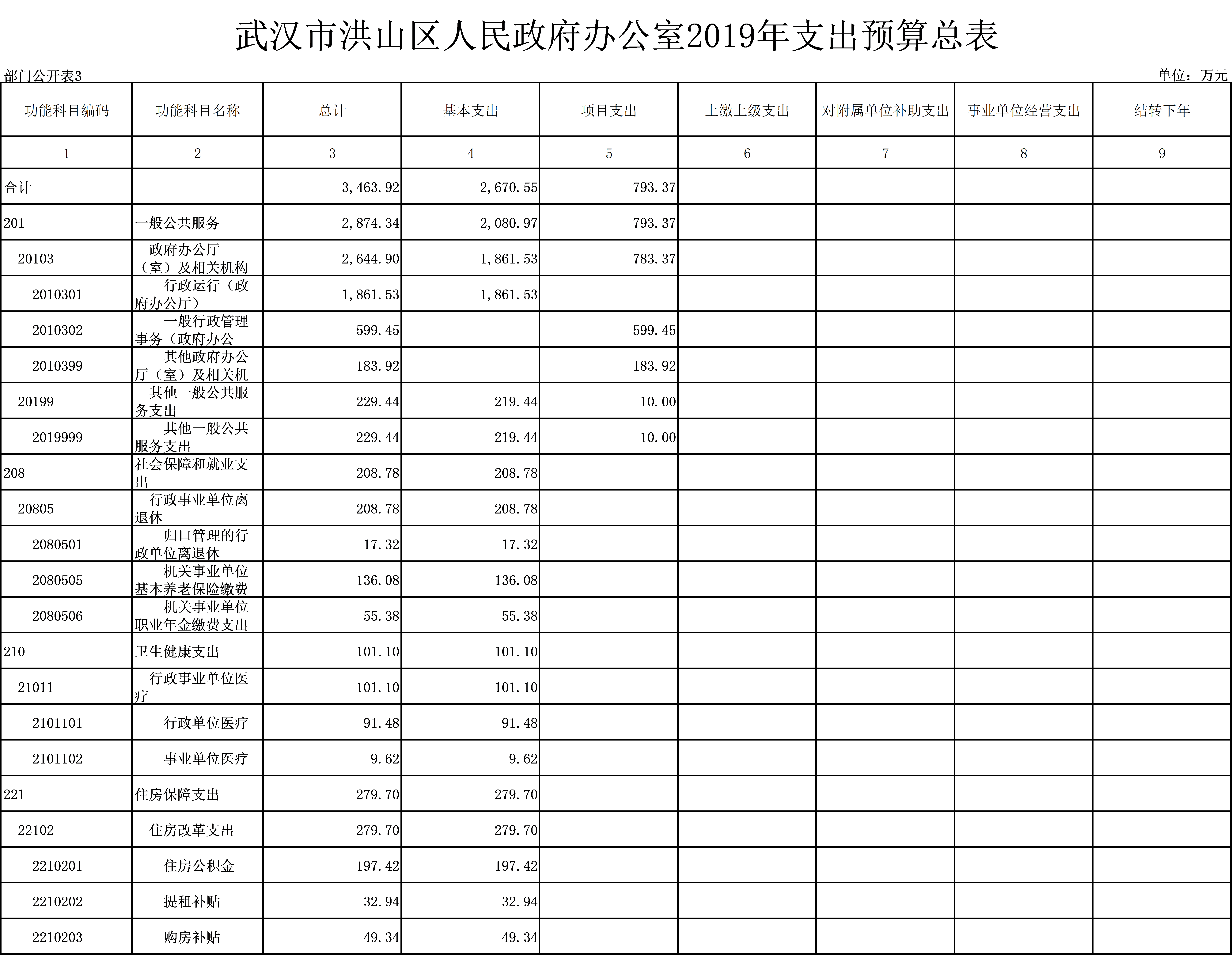 名 称:武汉市洪山区人民政府办公室2019年支出预算总表