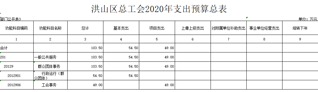 名 称:洪山区总工会2020年支出预算总表