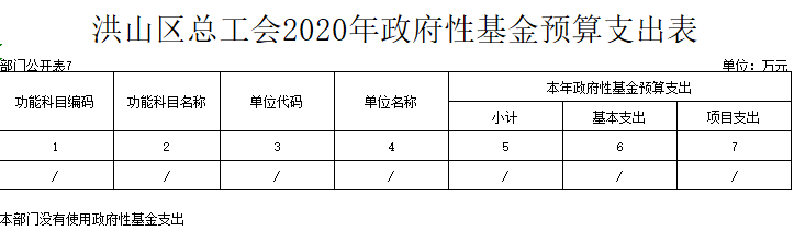 名 称:洪山区总工会2020年政府性基金预算支出表