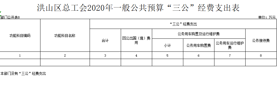 名 称:洪山区总工会2020年一般公共预算“三公”经费支出表