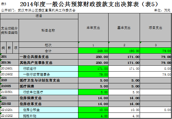 名 称:武汉市洪山区委区直属机关工作委员会2014年度部门决算 |