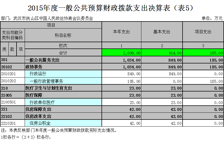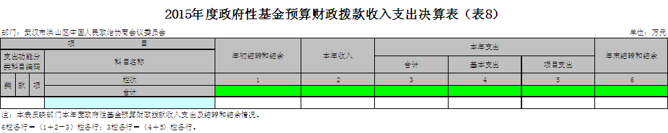 名 称:2015年度中国人民政治协商会议武汉市洪山区委员会部门决算 |