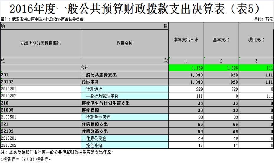 名 称:2016年度中国人民政治协商会议武汉市洪山区委员会部门决算 |