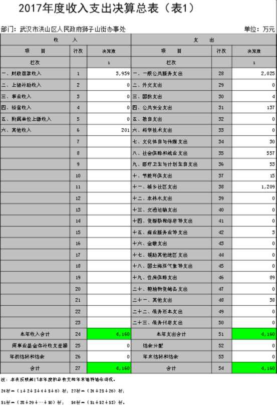 名 称:2017年度武汉市洪山区人民政府狮子山街办事处部门决算 |