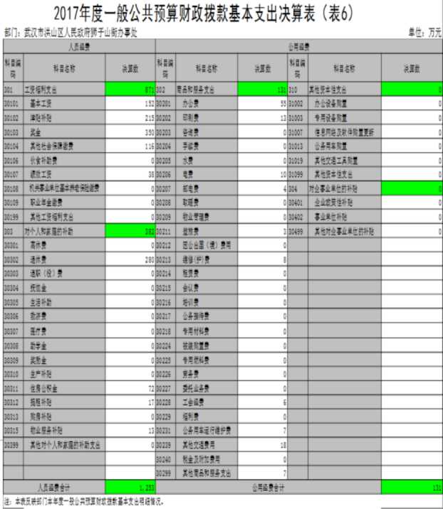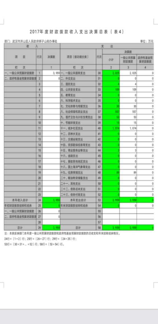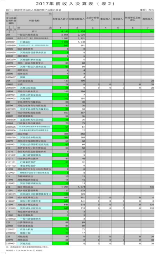 第二部分 武汉市洪山区人民政府狮子山街办事处2017年度部门决算表